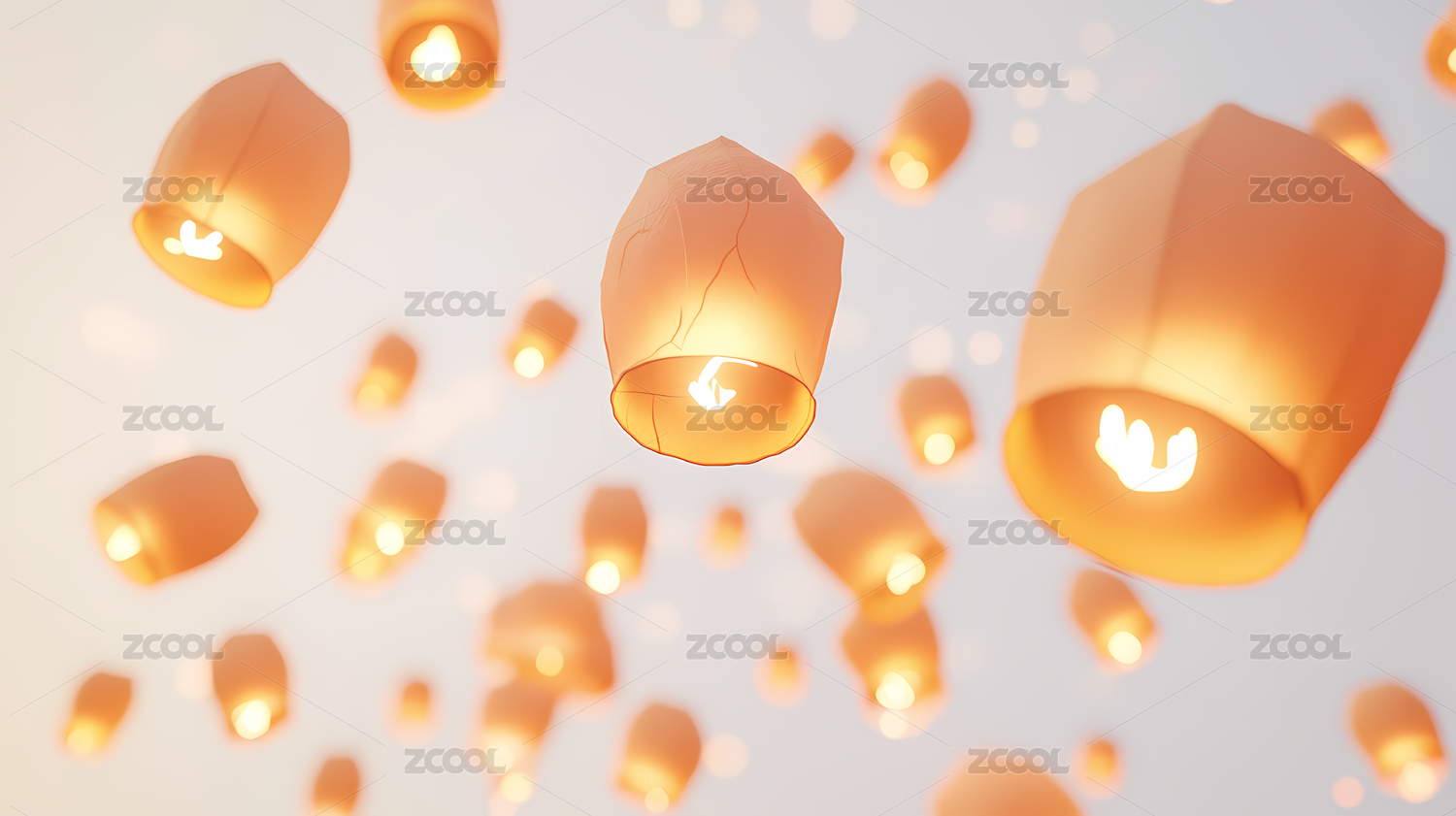 天空,纸灯笼,户外,庆祝,特写,发光,光,照亮,橙色,无人