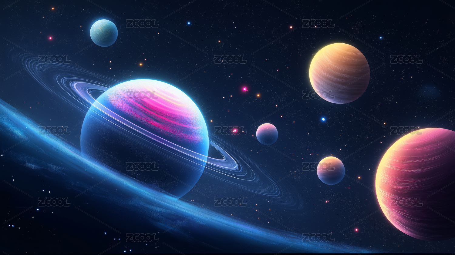 太空,星球,唯美,梦幻,小清新,插画,宇宙,星空,幻想,色彩