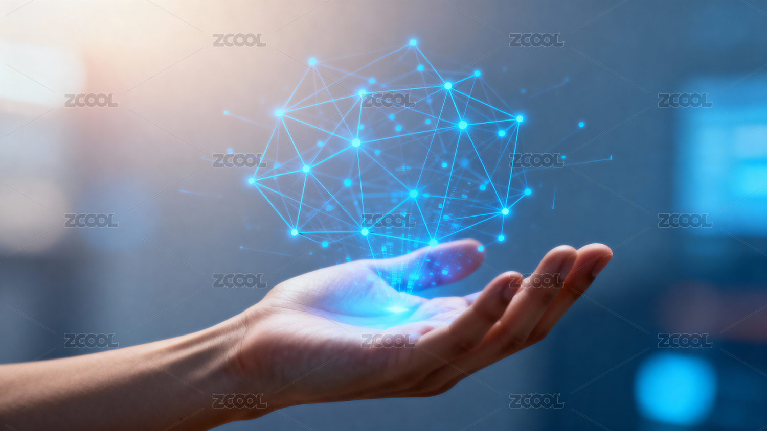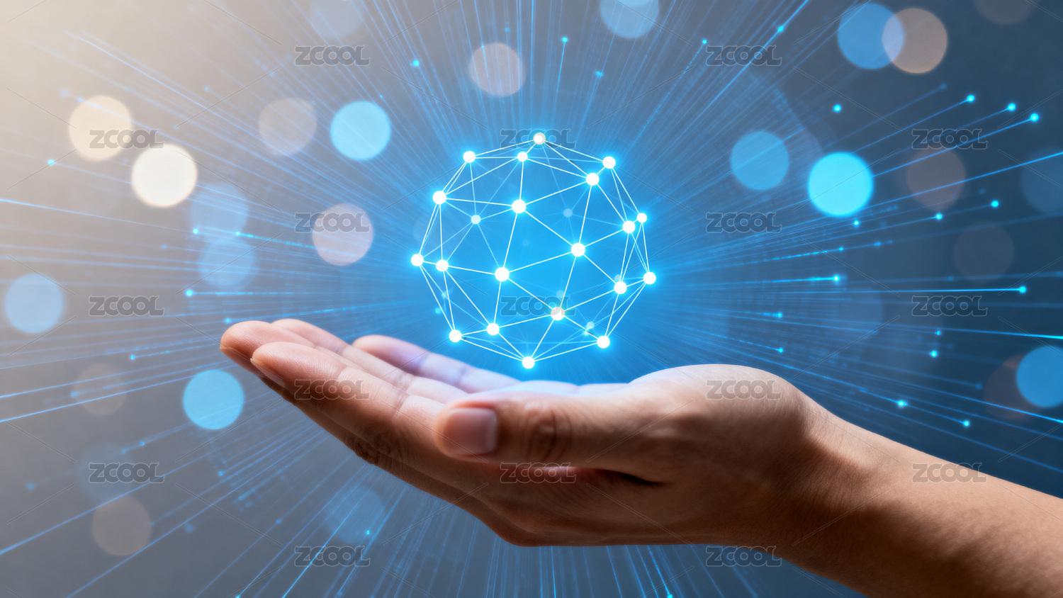 手掌连接科技网络图案