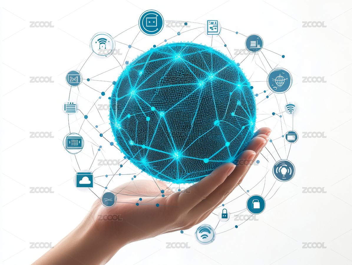 手上托着悬浮的球体象征全球互联网