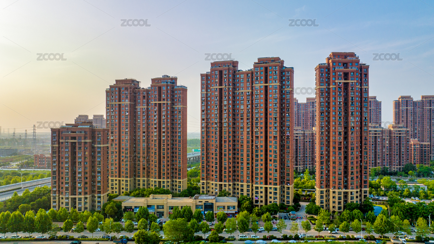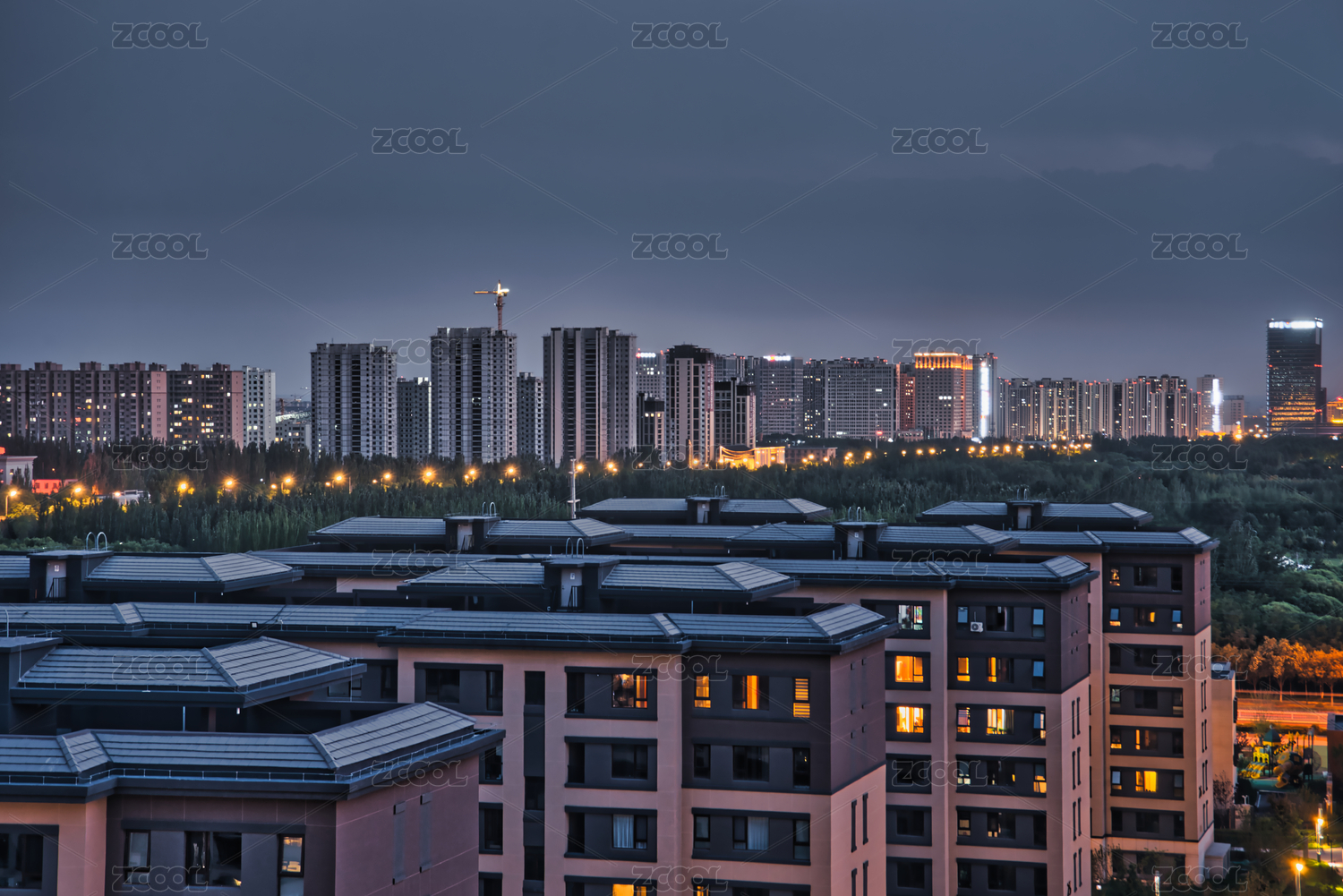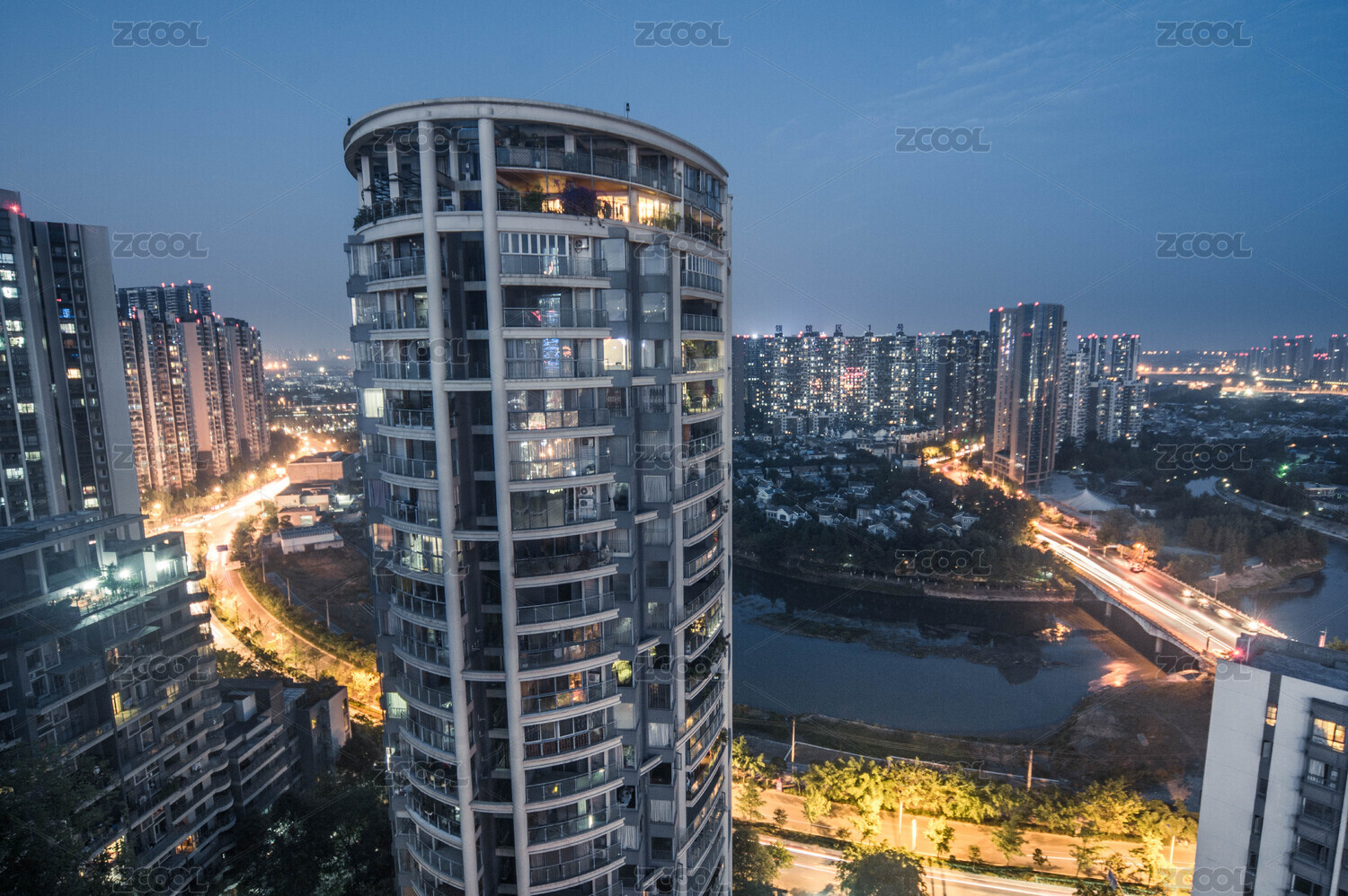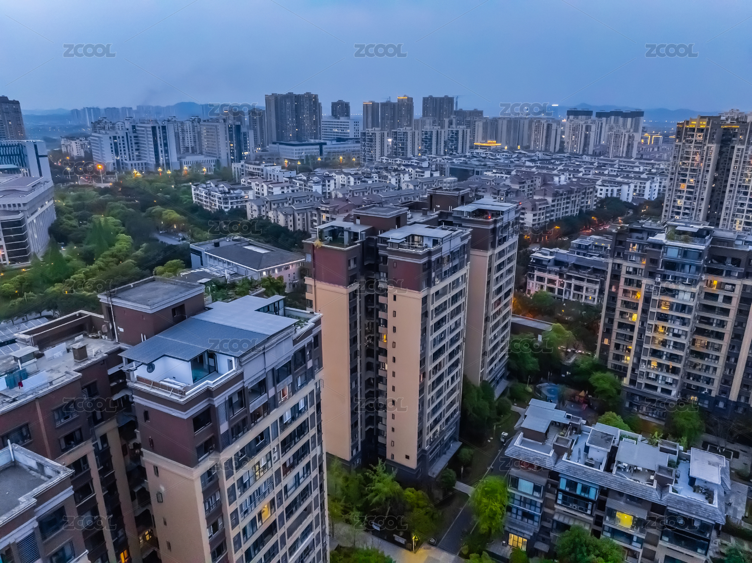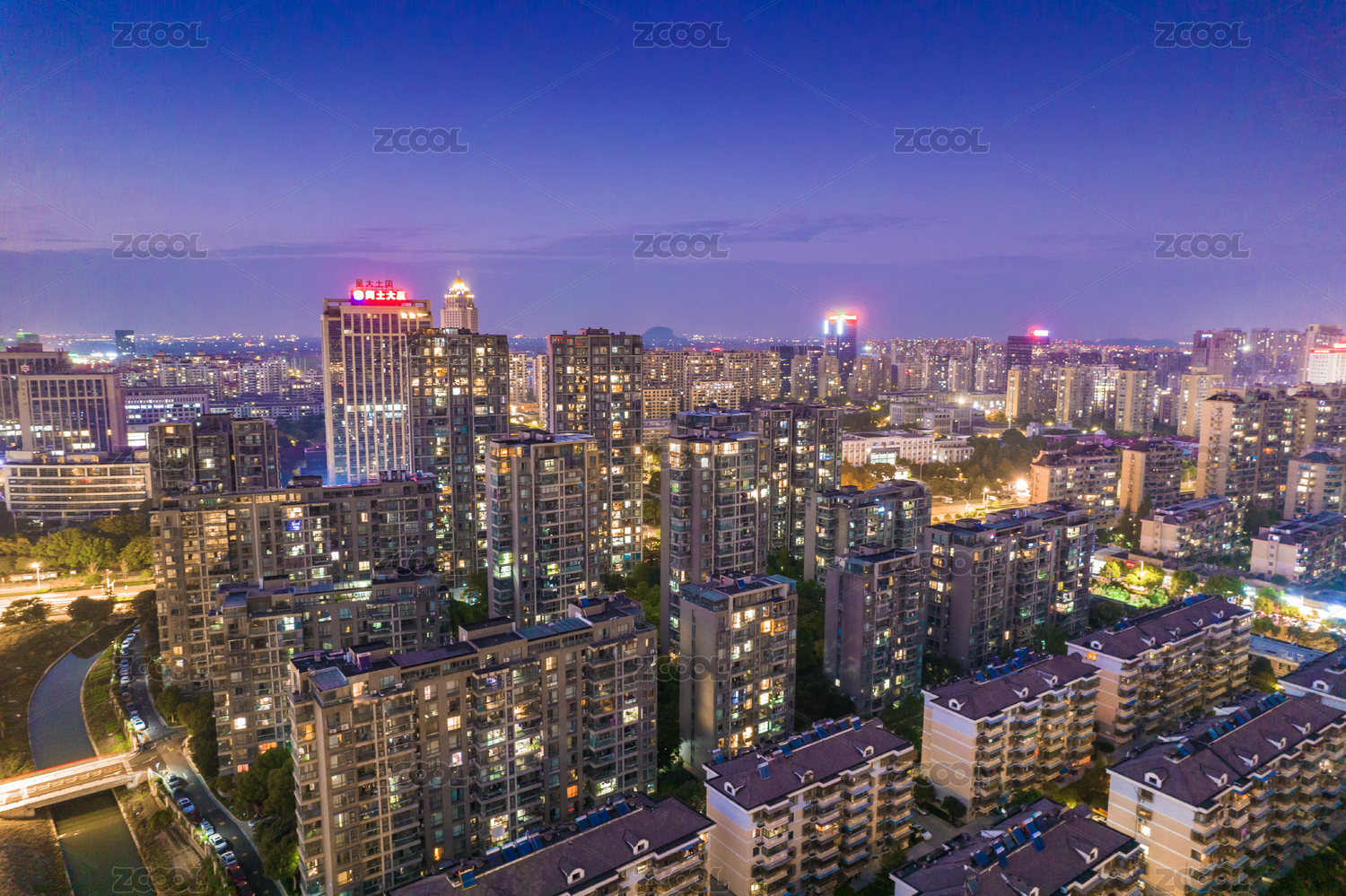 浙江杭州钱塘区东沙湖畔城市住宅区夜景