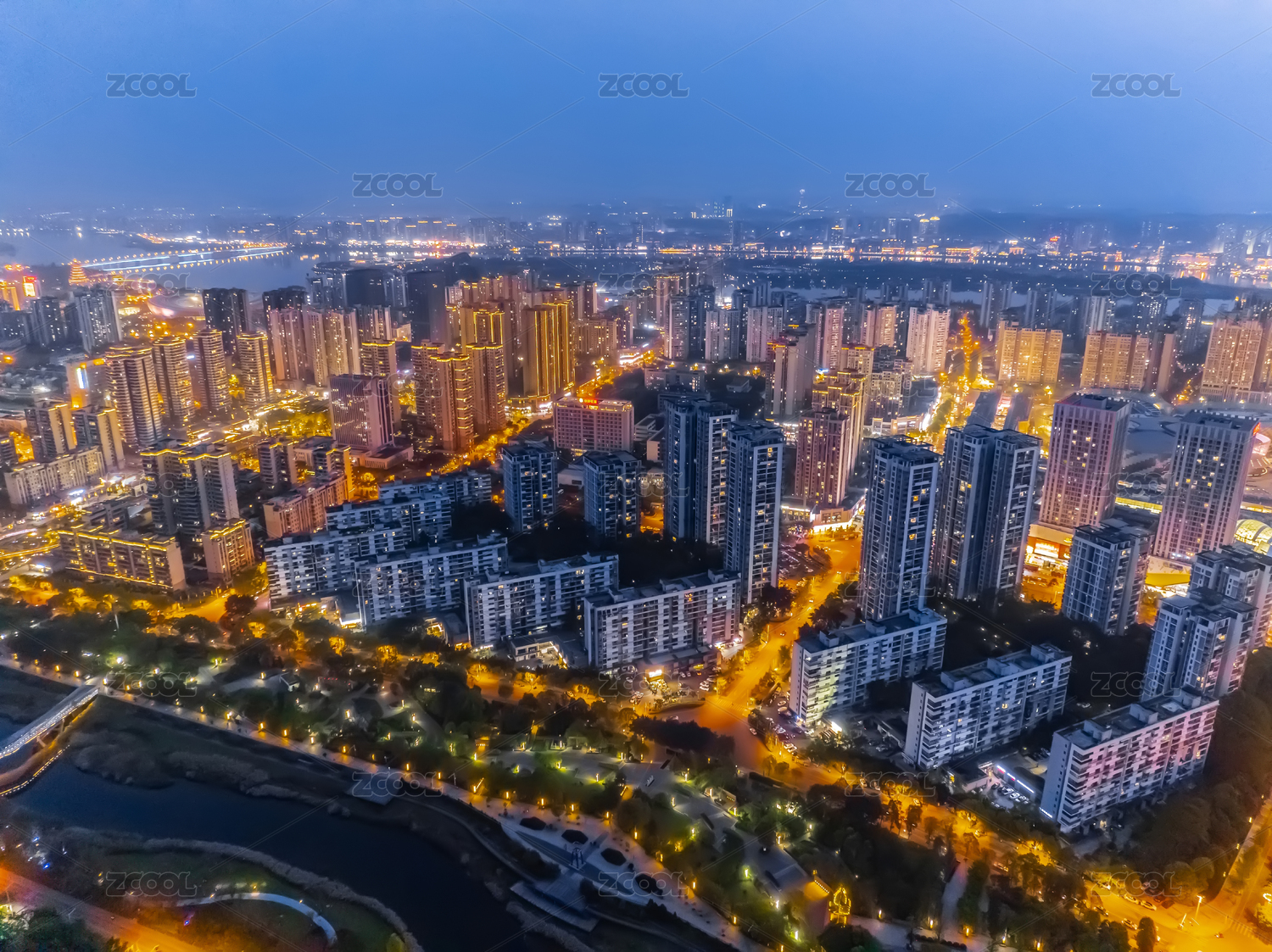 中国四川省夜幕遂宁市城区高楼大厦建筑