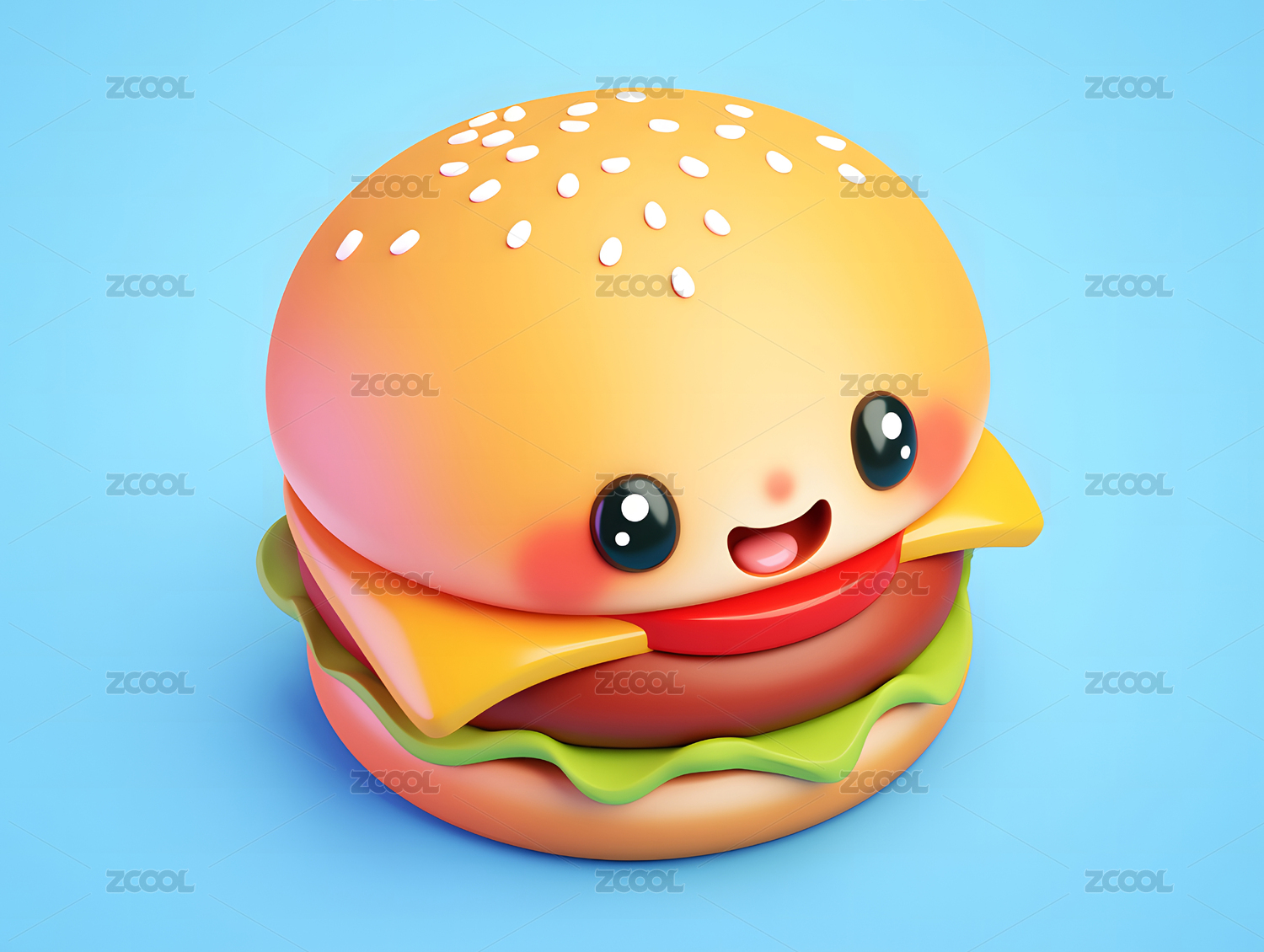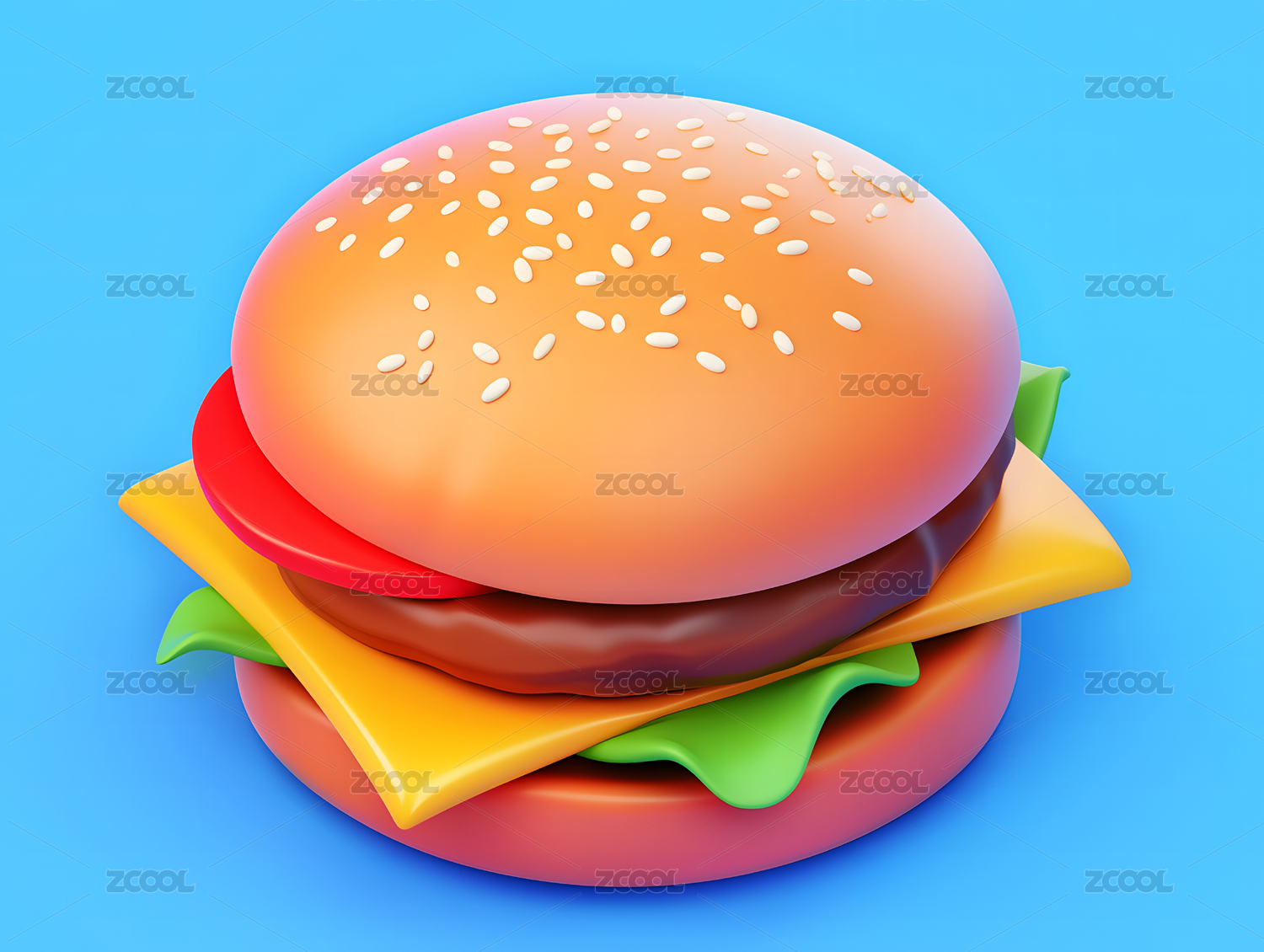 3D,C4D,立体,素材,海报,汉堡,美食,快餐,食物,卡通