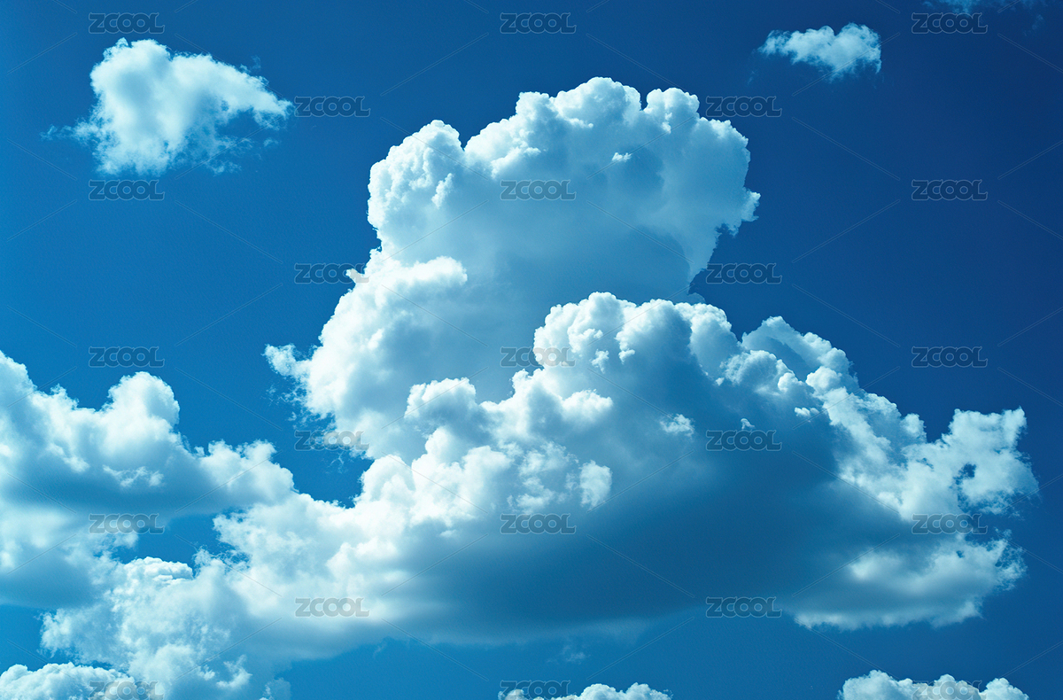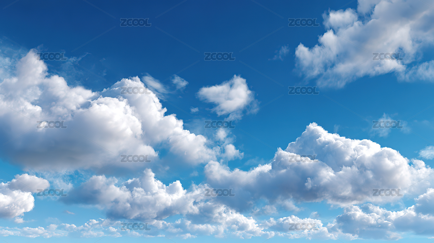 晴朗蓝色天空漂浮的白云云朵清新空气