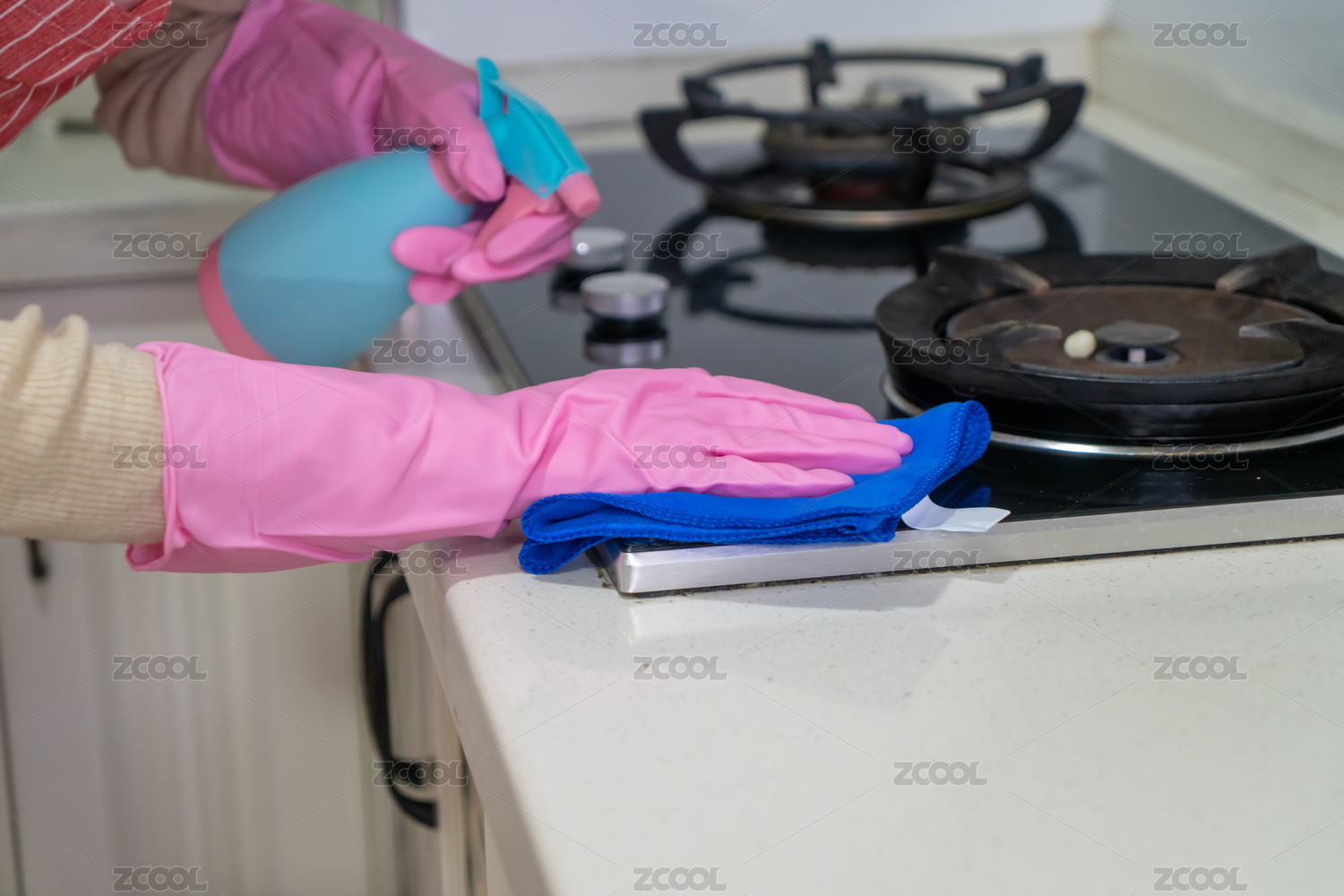 家庭主妇在打扫厨房清洁