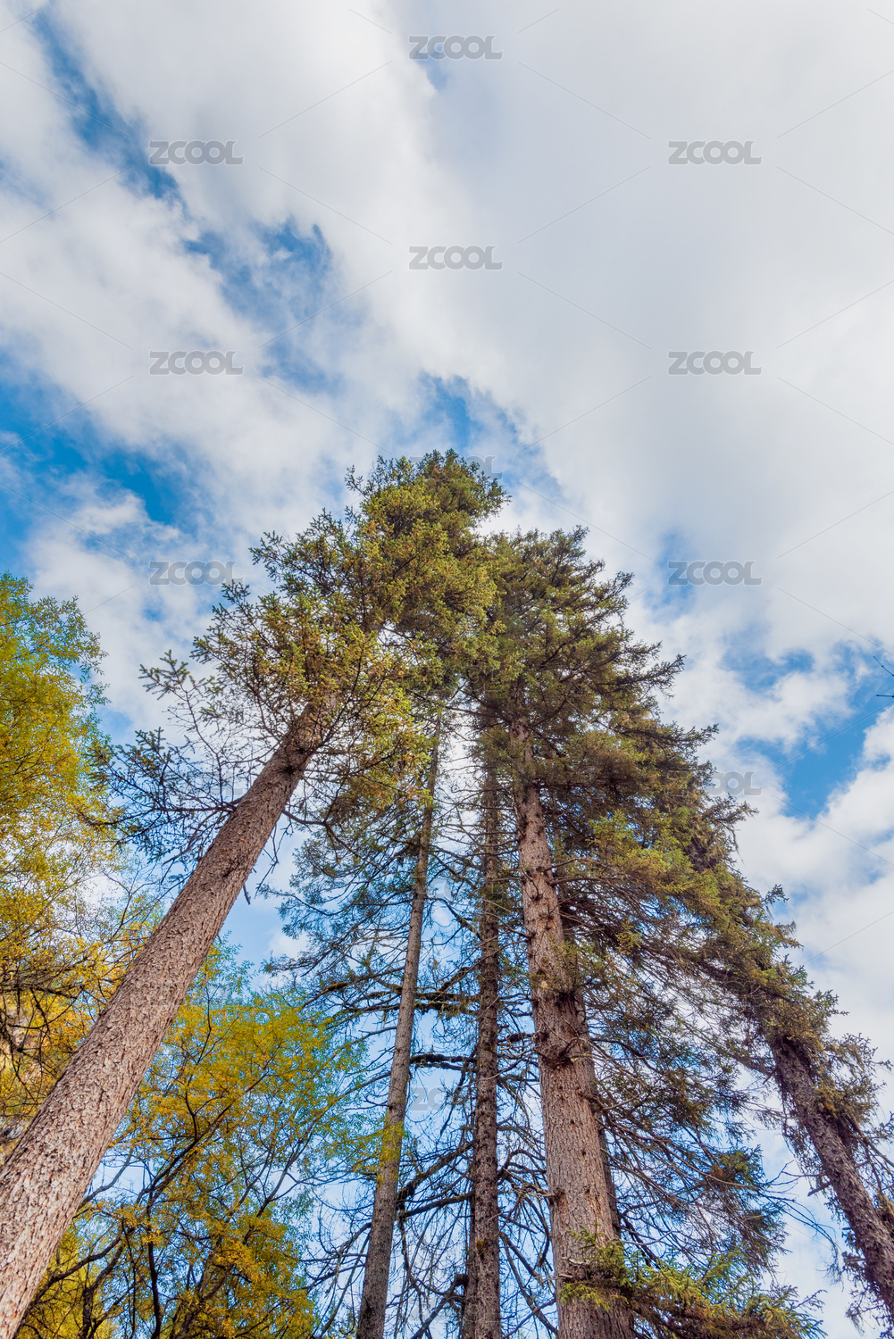 中国四川黑水县卡龙沟秋天斑驳的大树