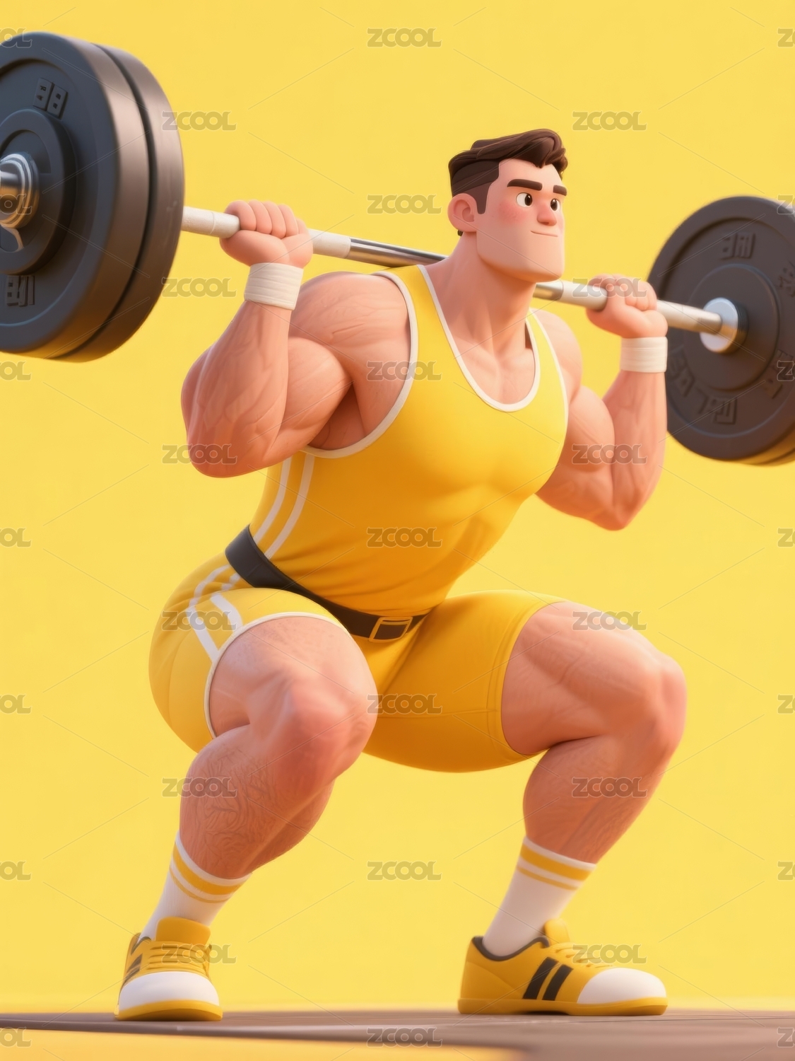 双手握哑铃的健身男孩盲盒手办3D卡通插画