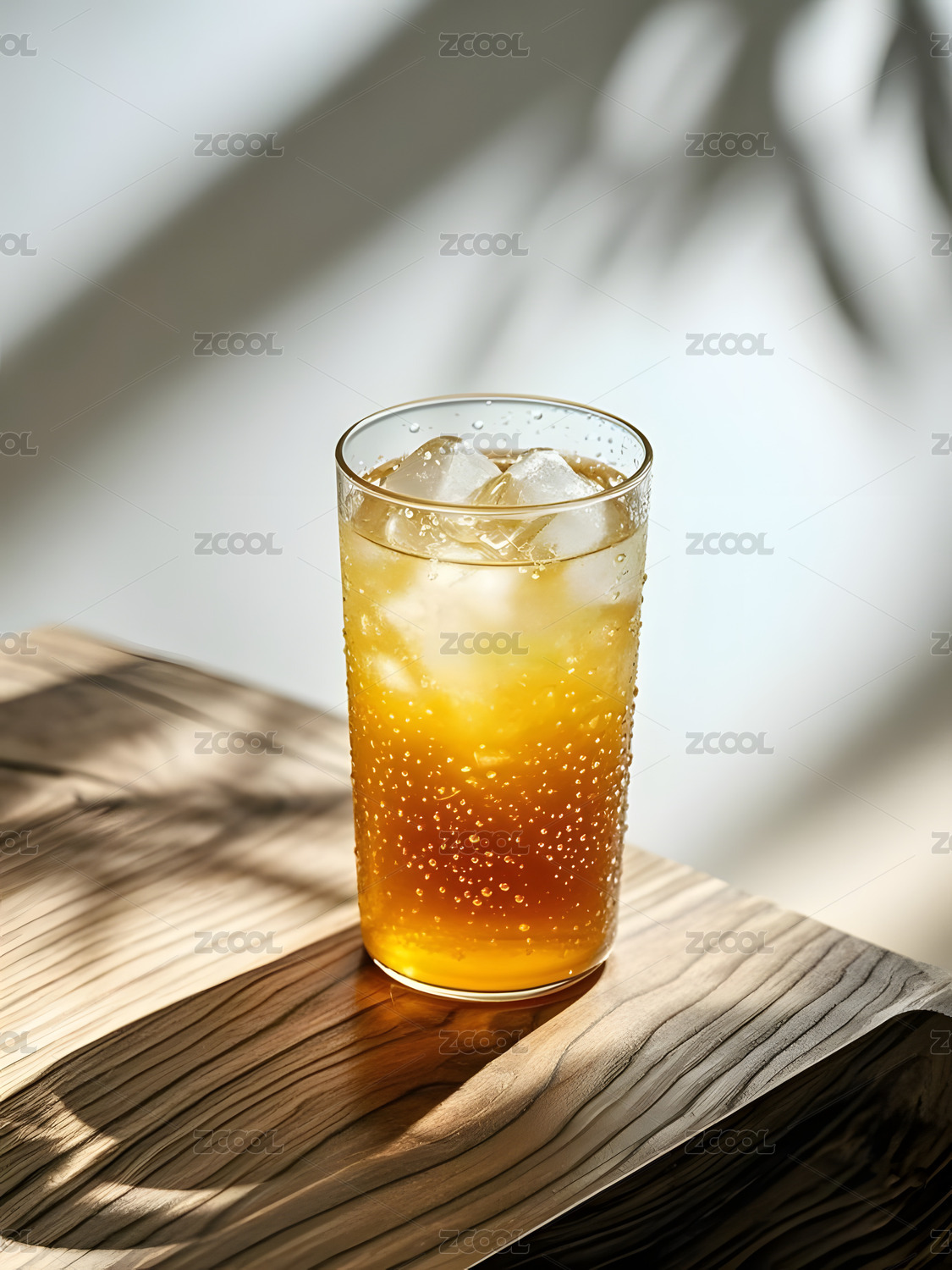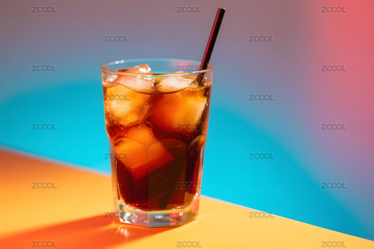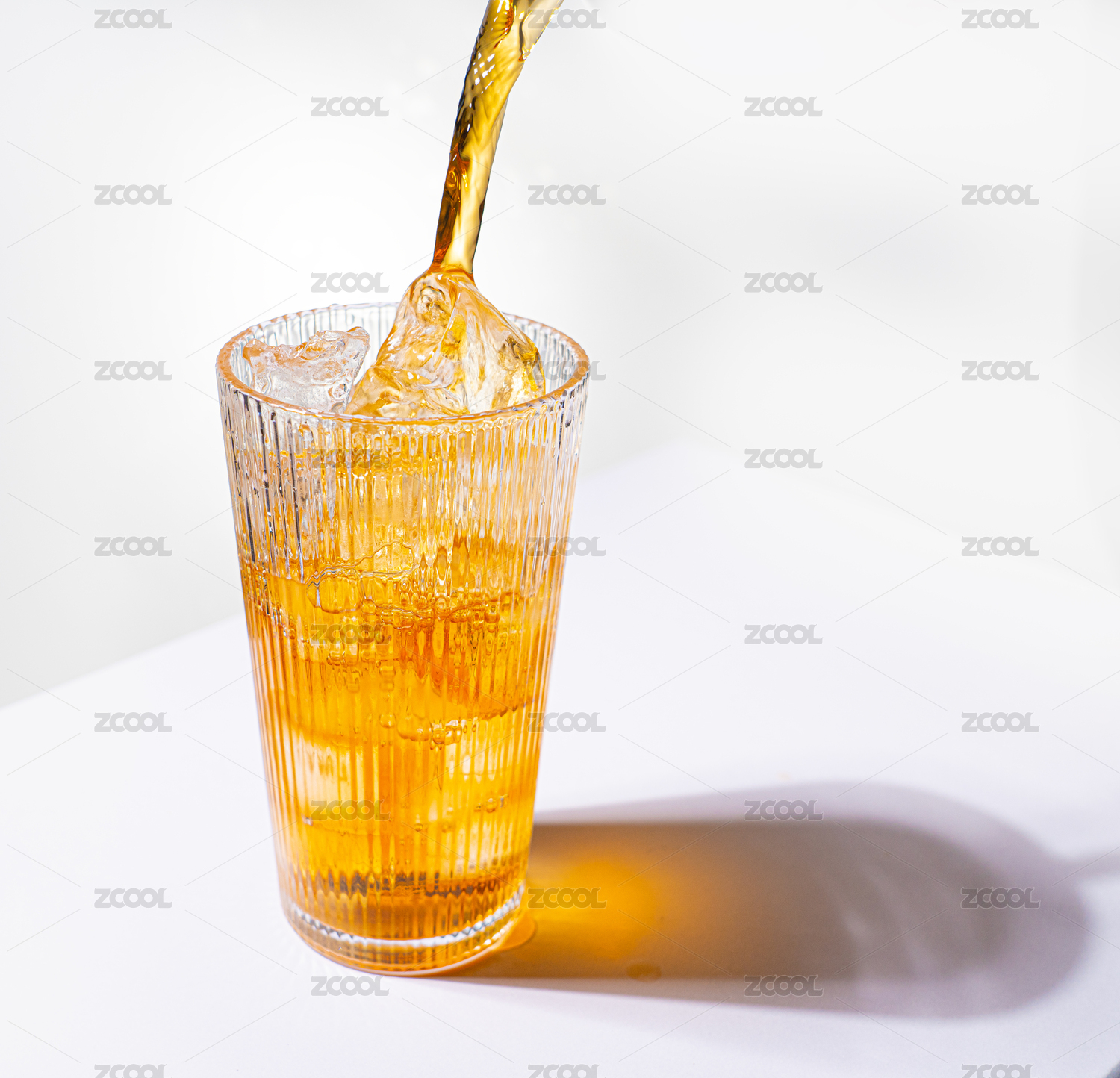 透明玻璃被装的满是冰块清凉解暑的碳酸饮料