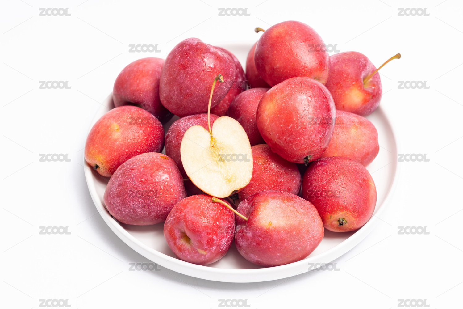 白底上黑瓷碗盛装的新鲜香妃小苹果