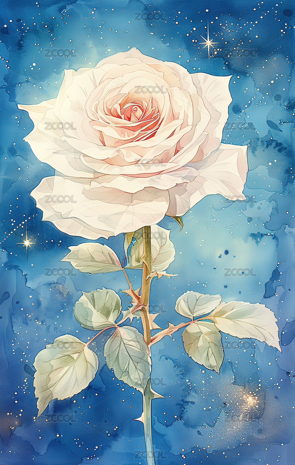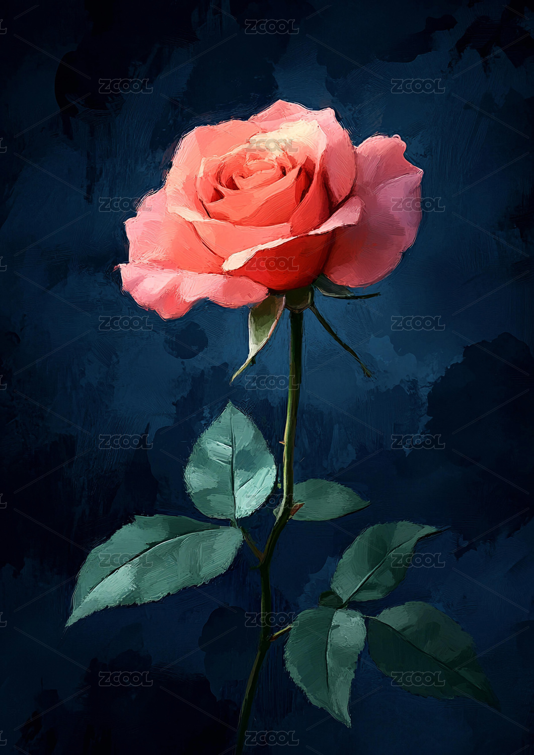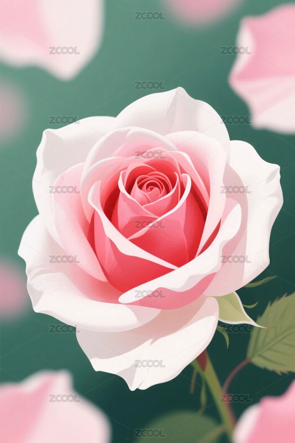 粉白渐变玫瑰花插画