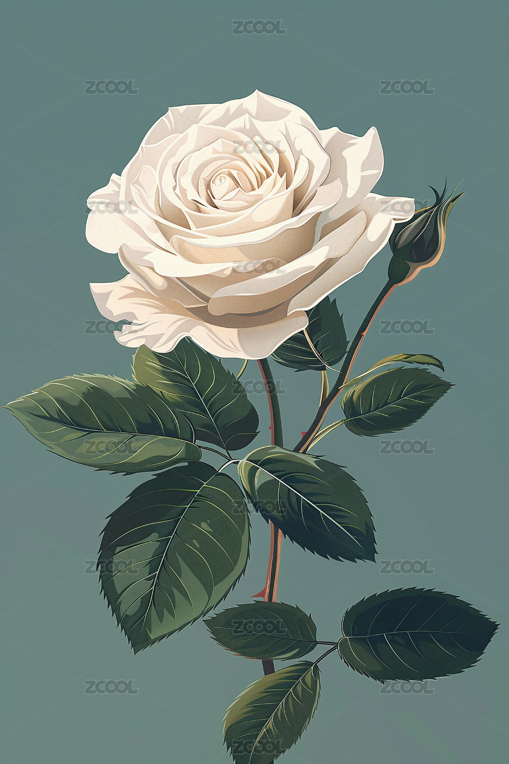 白玫瑰,白色,玫瑰,花,花卉,背景,插画,壁纸,手绘,浪漫