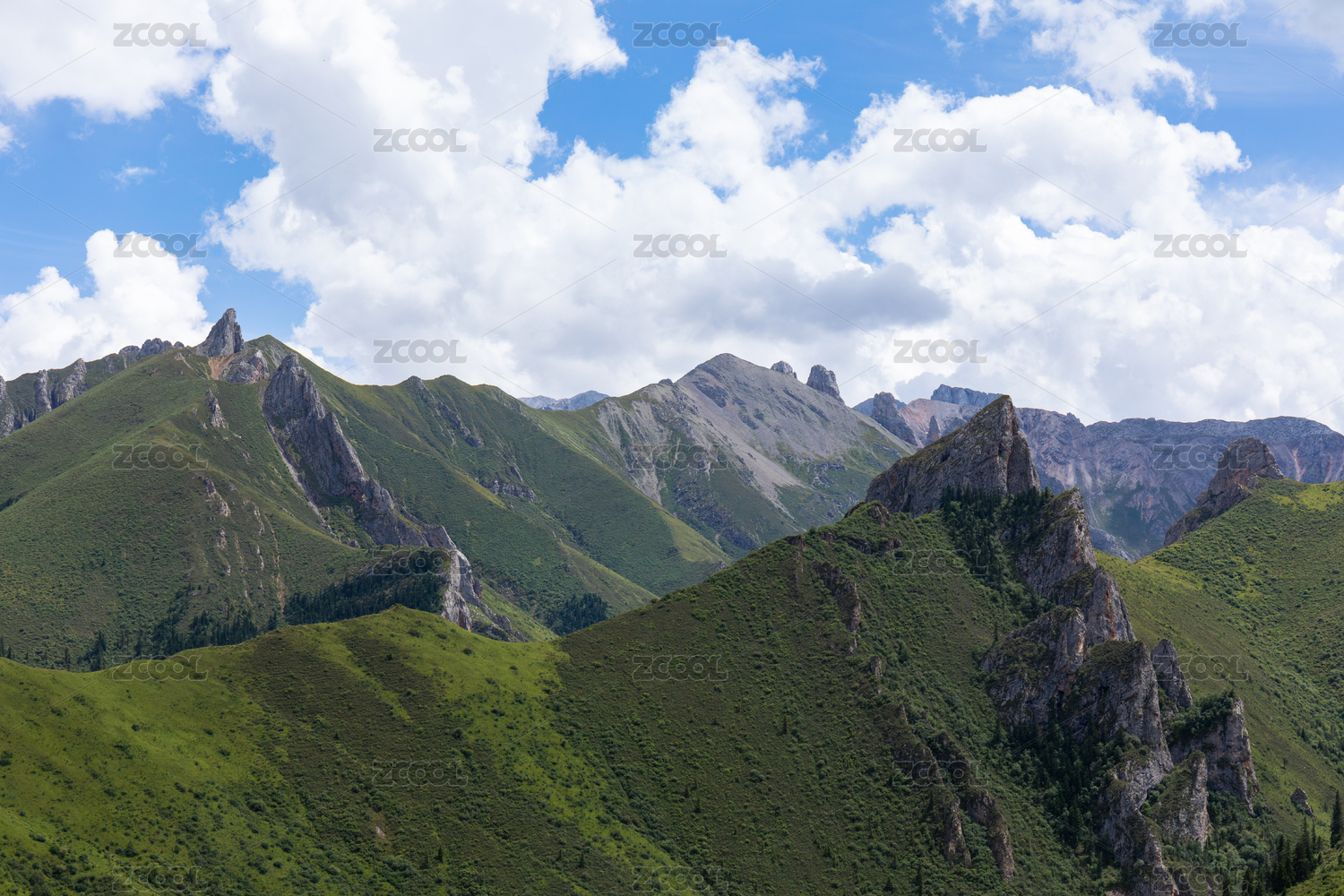 甘南秘境洛克之路连绵绿色山脉蓝天白云