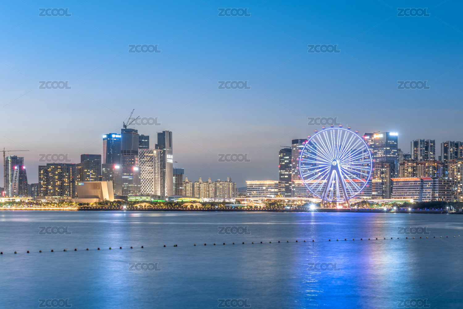 中国广东深圳宝安中心区前海欢乐港湾夜景