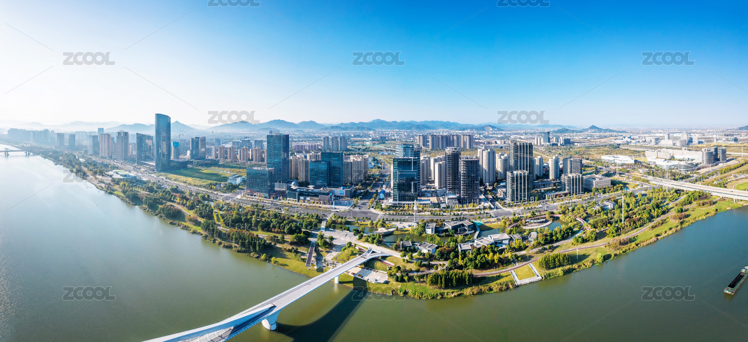 上虞,绍兴,一江两岸,城市风光,全景,江河,建筑,城市天际线,天空,航拍