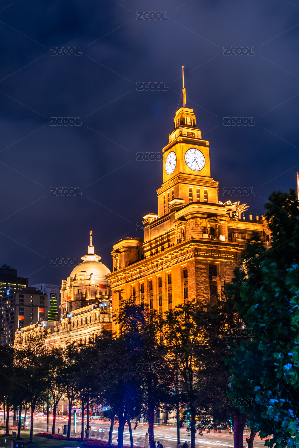 上海中山东一路上欣赏外滩万国建筑群夜景
