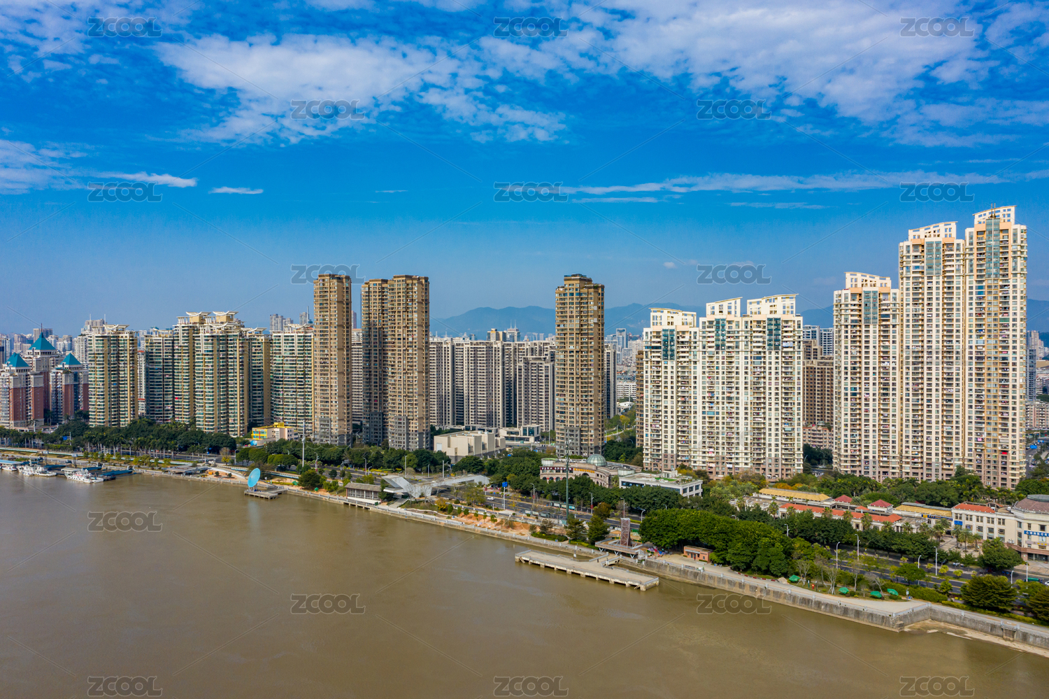 福建,福州,闽江,航拍,城市,河流,水系,江河,建筑群,蓝天白云