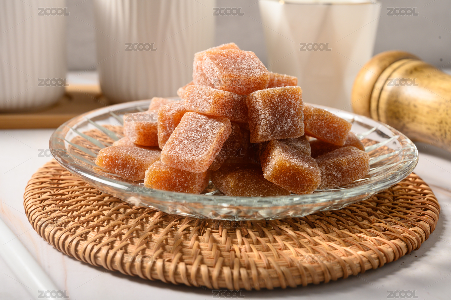桌面上的盘子里的美味可口的姜汁软糖