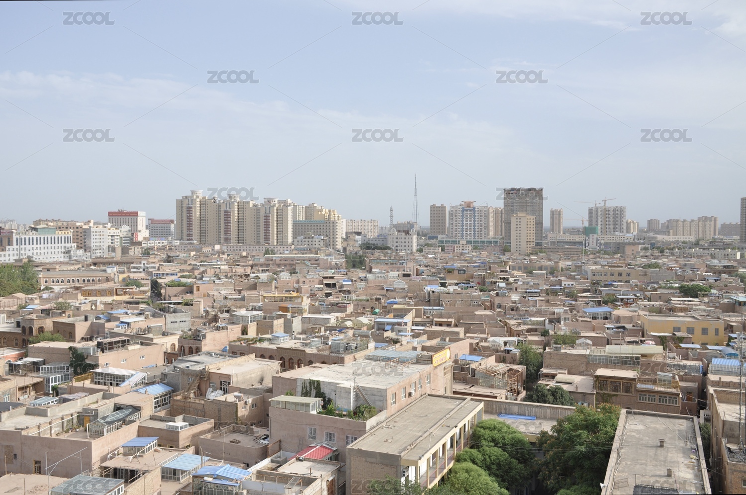 中国新疆喀什老城全景 喀什艾提尕尔清真寺