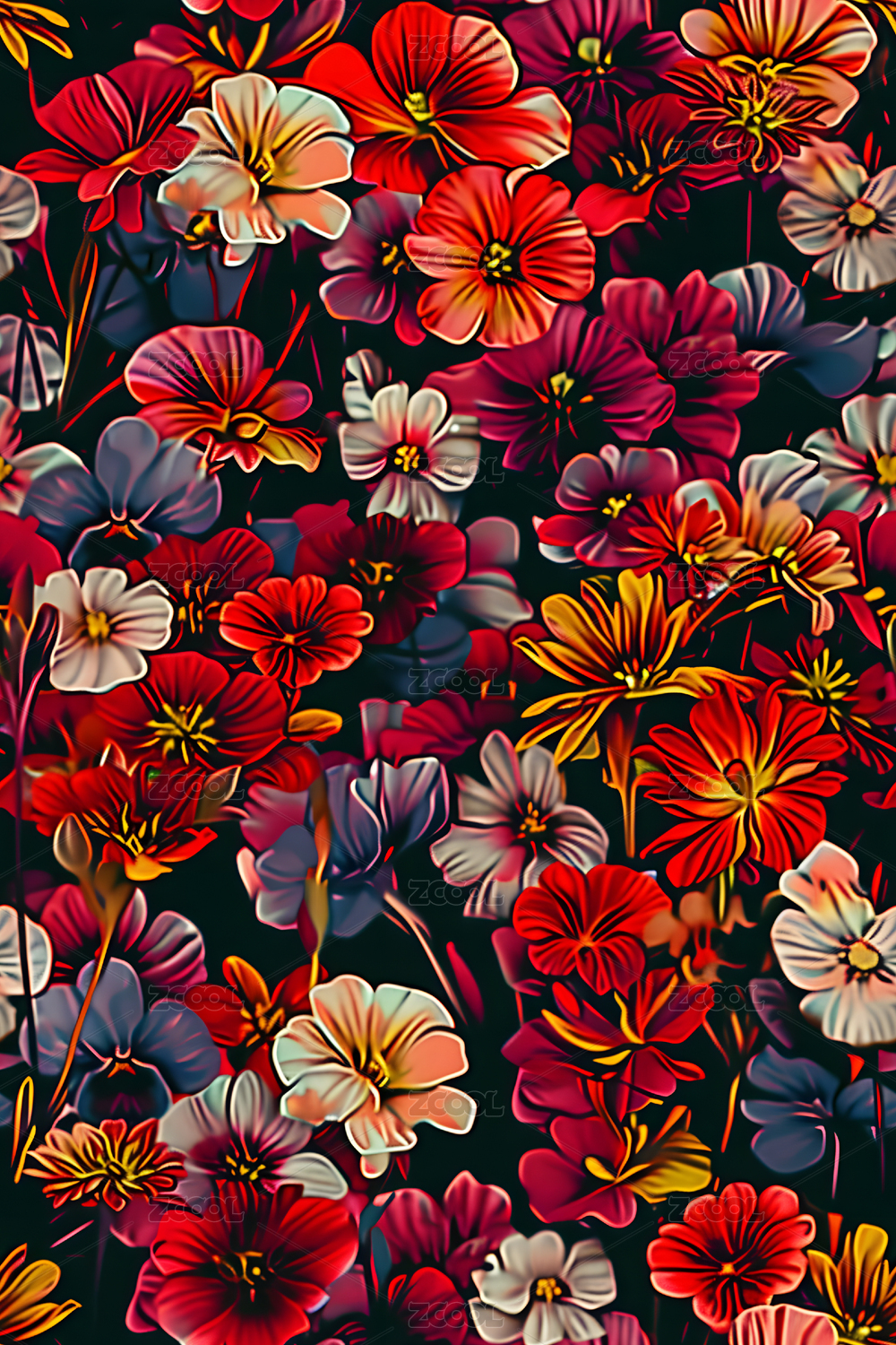四方连续图数码花卉