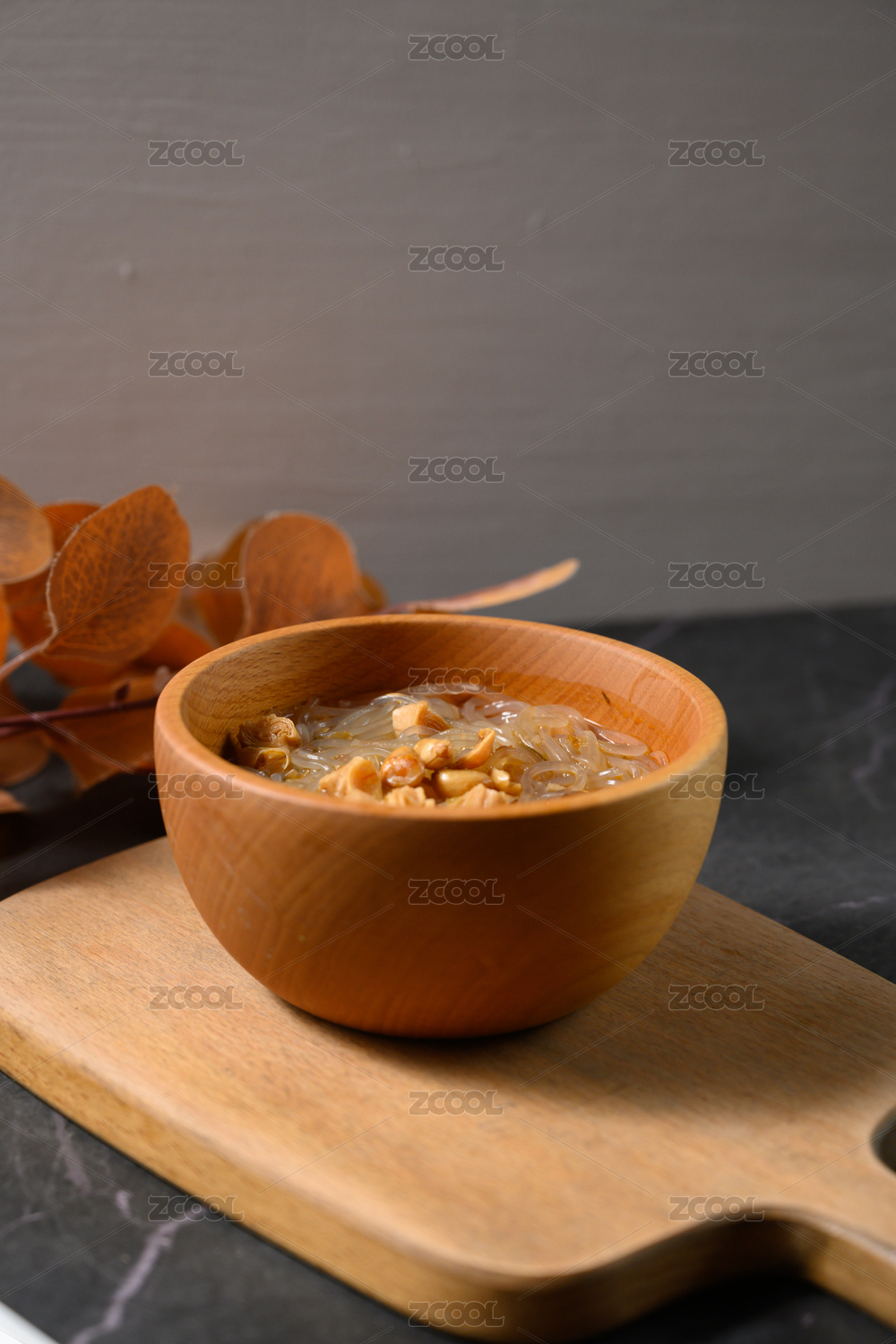 桌面上的碗里的美味可口的酸辣粉