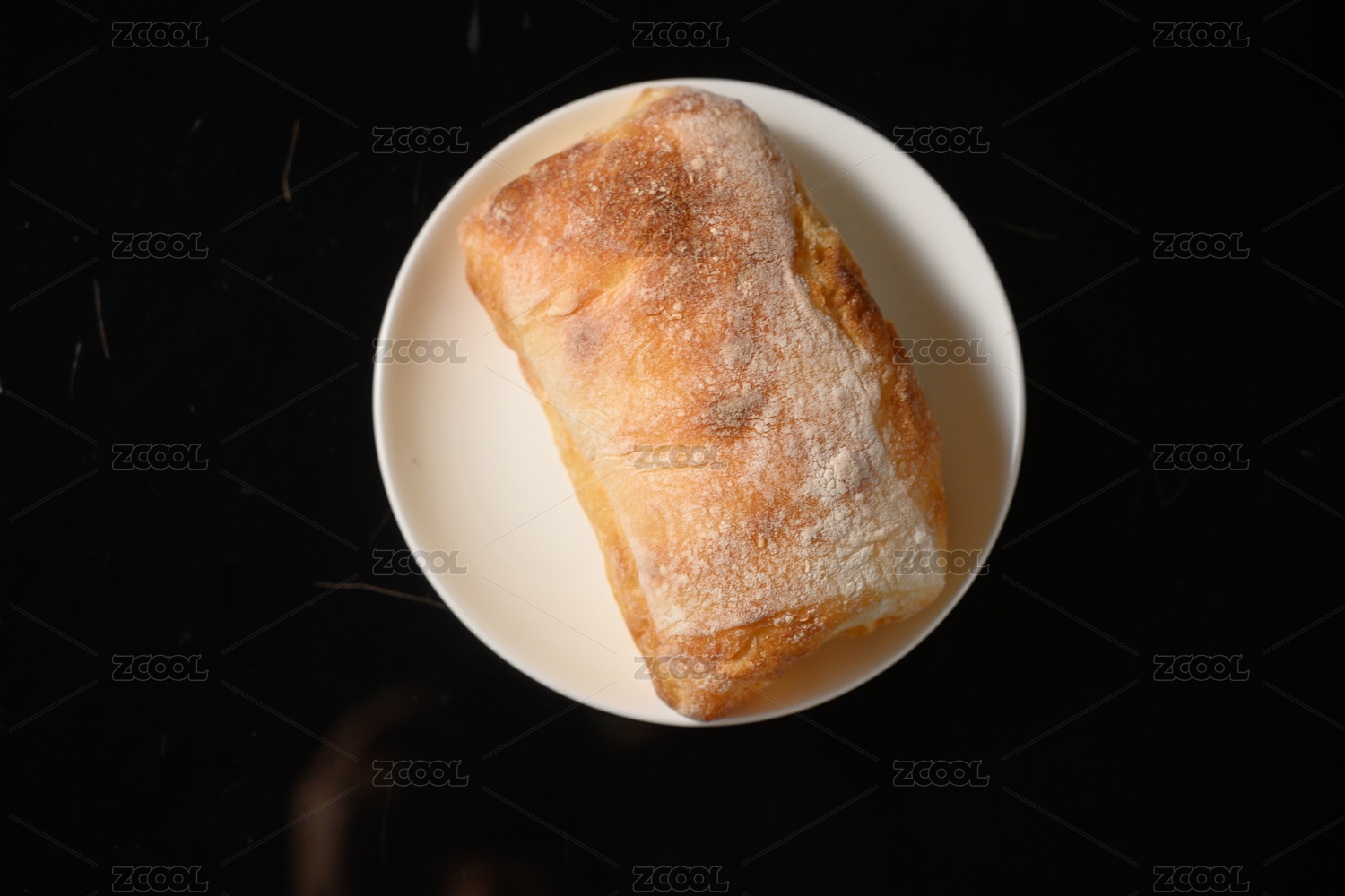 桌面上的盘子里的美味可口的恰巴塔面包