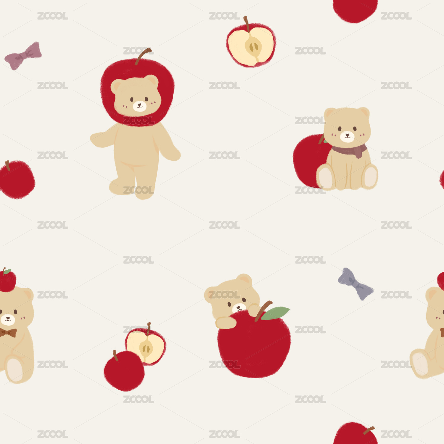 四方连续小熊和苹果