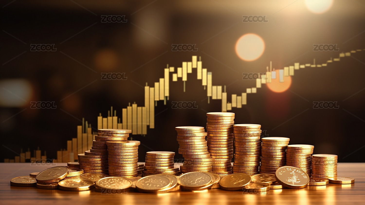 金币堆叠与金融图表 财富增长趋势