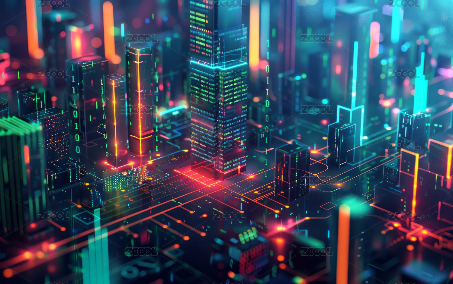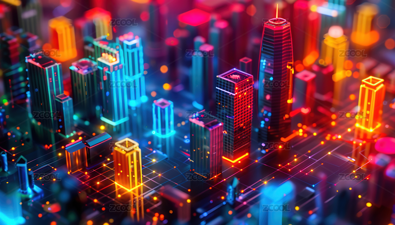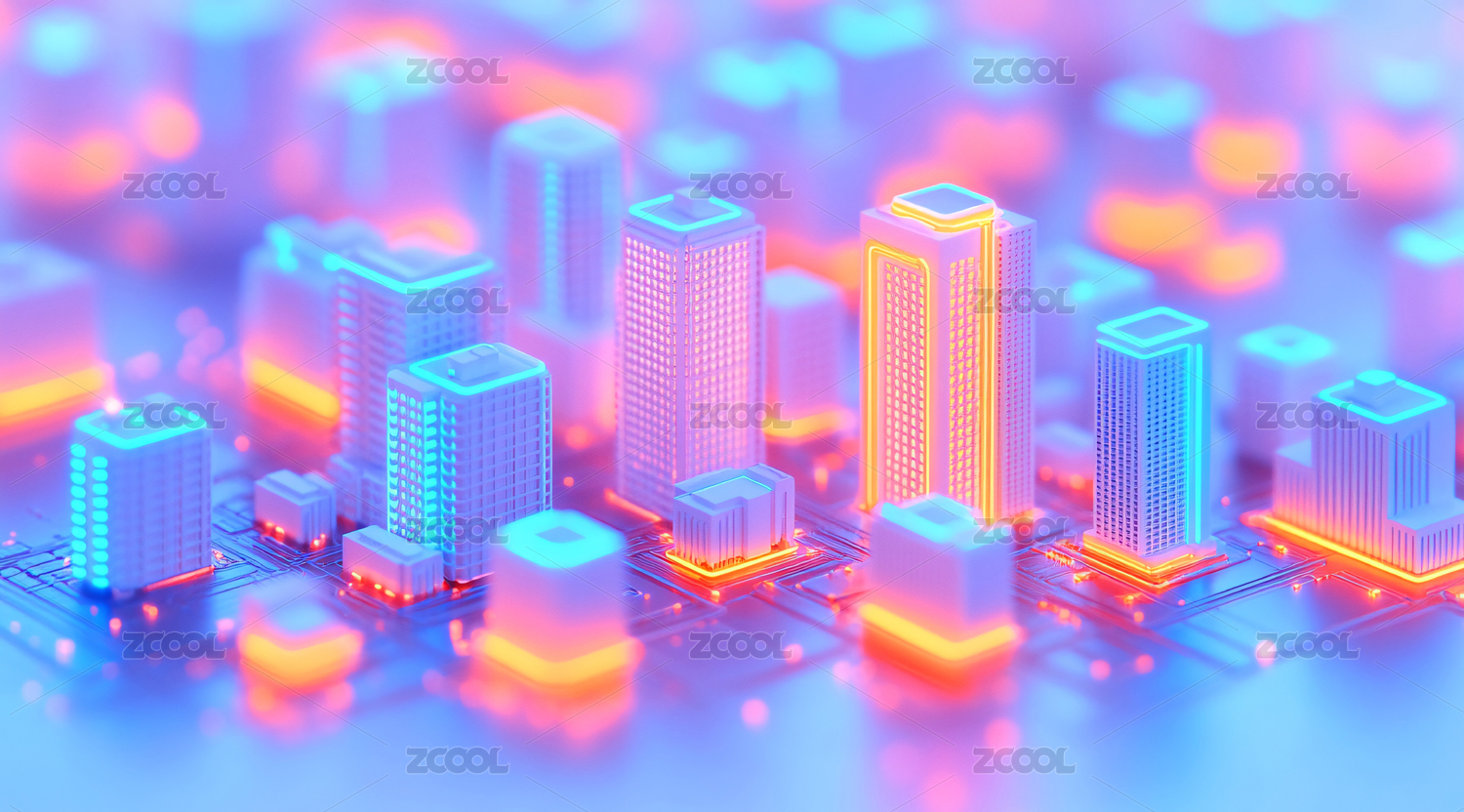 赛博朋克城市建筑现代科幻商务三维渲染插画