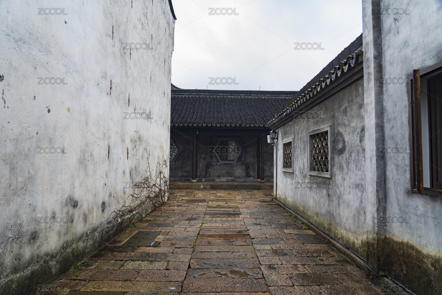 中国江苏无锡古镇老宅建筑小娄巷古街门窗走廊特写
