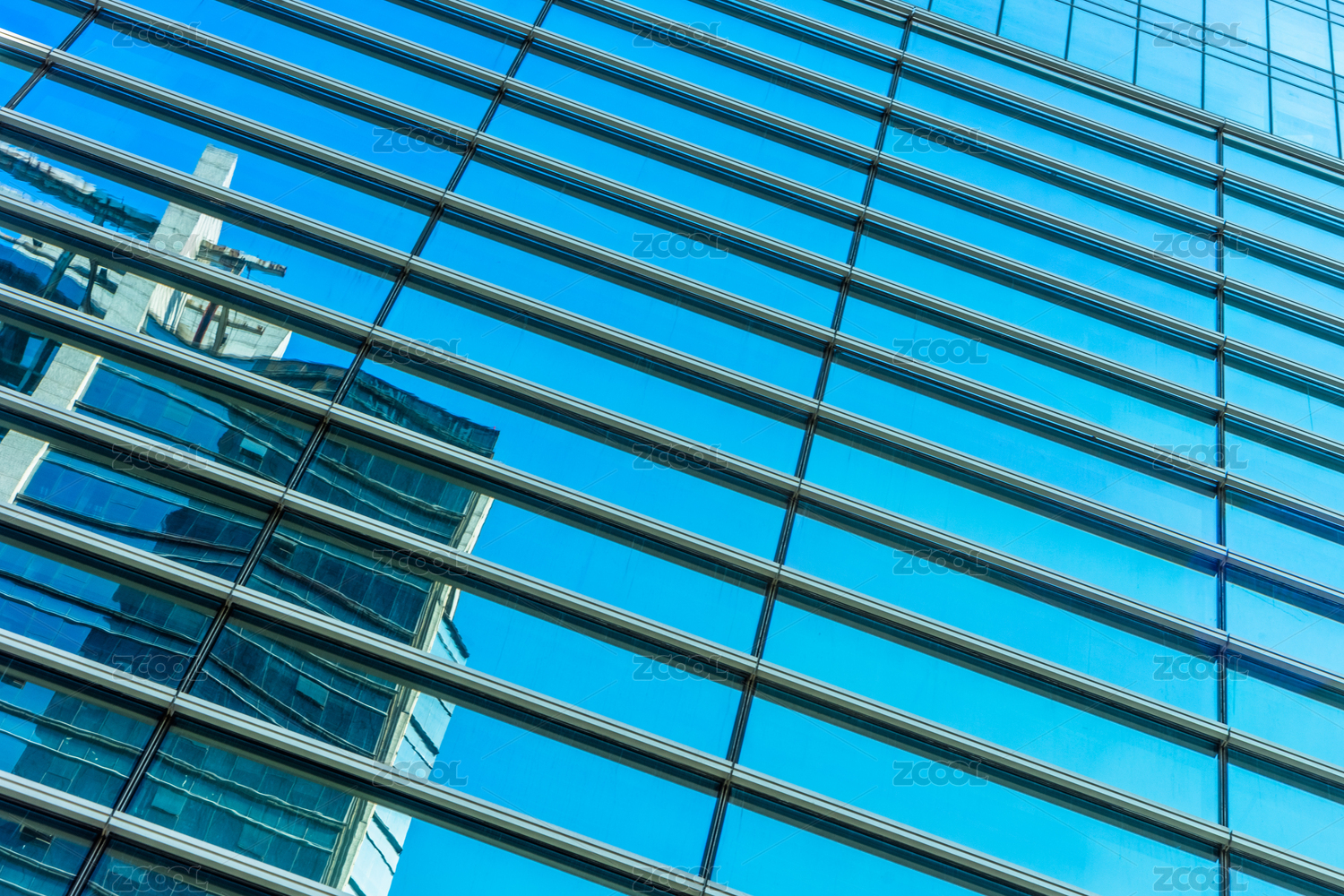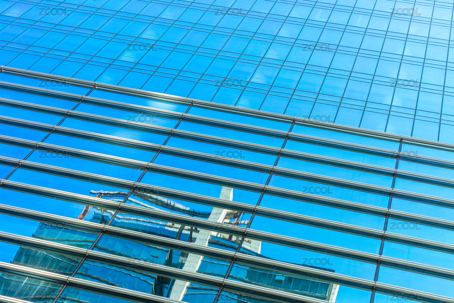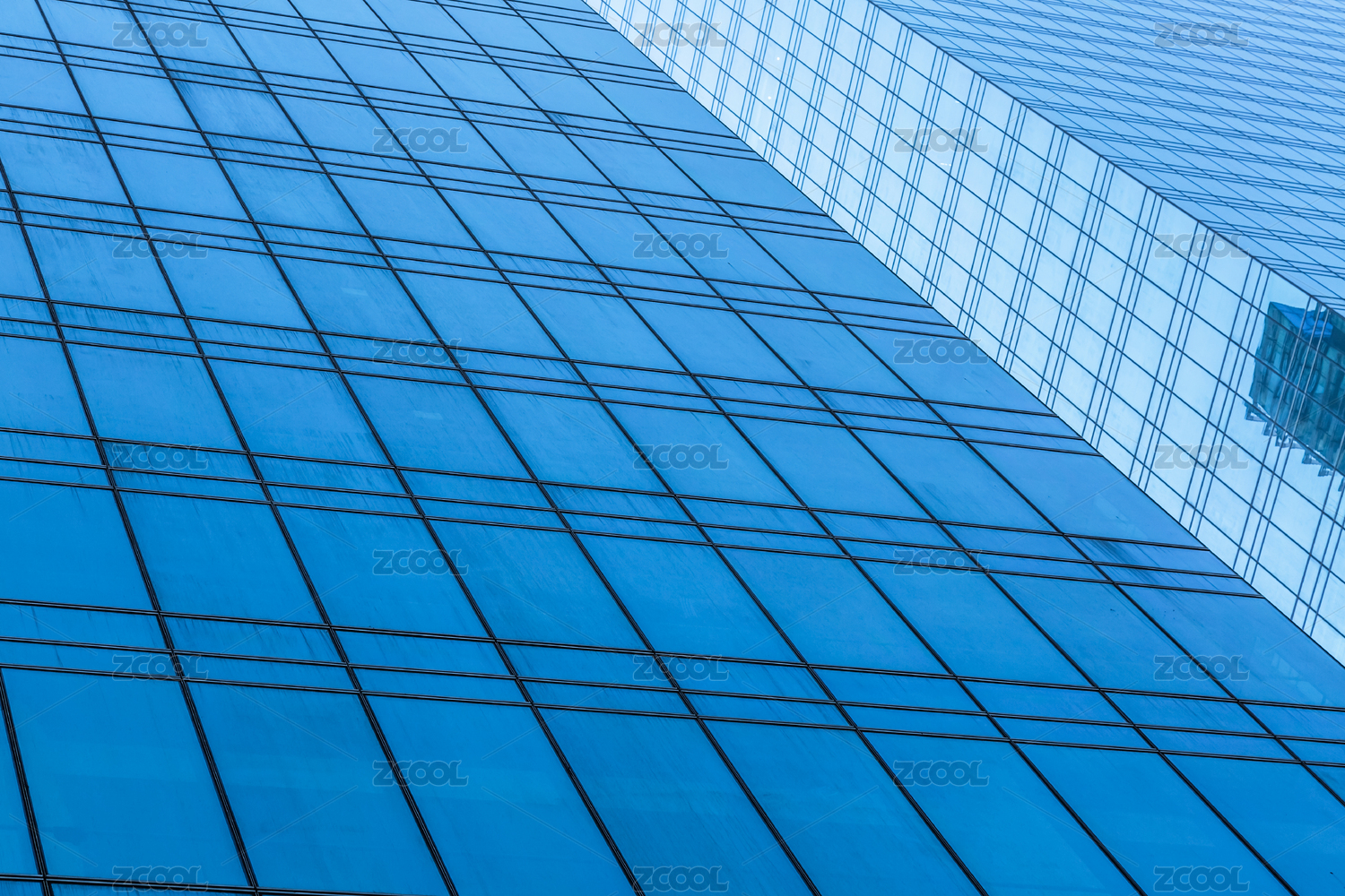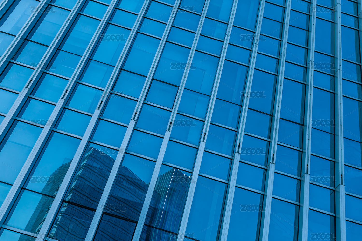 抽象的建筑摩天大楼的蓝色玻璃墙
