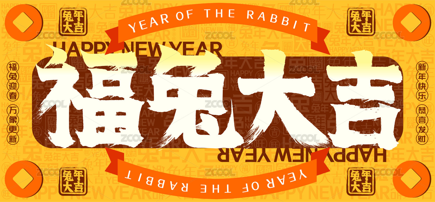 福兔大吉国潮铜钱文字装饰春节新年书法字