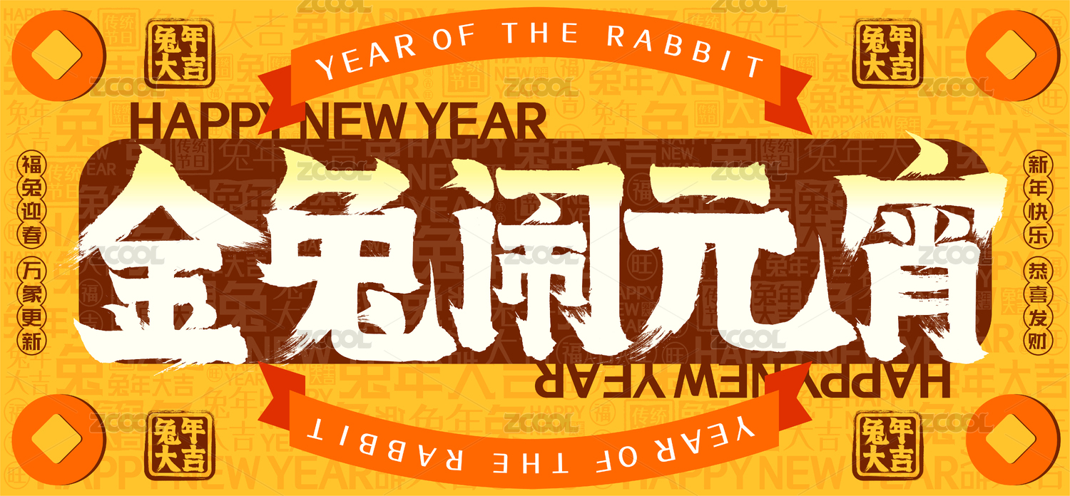 金兔闹元宵国潮铜钱文字装饰春节新年书法字