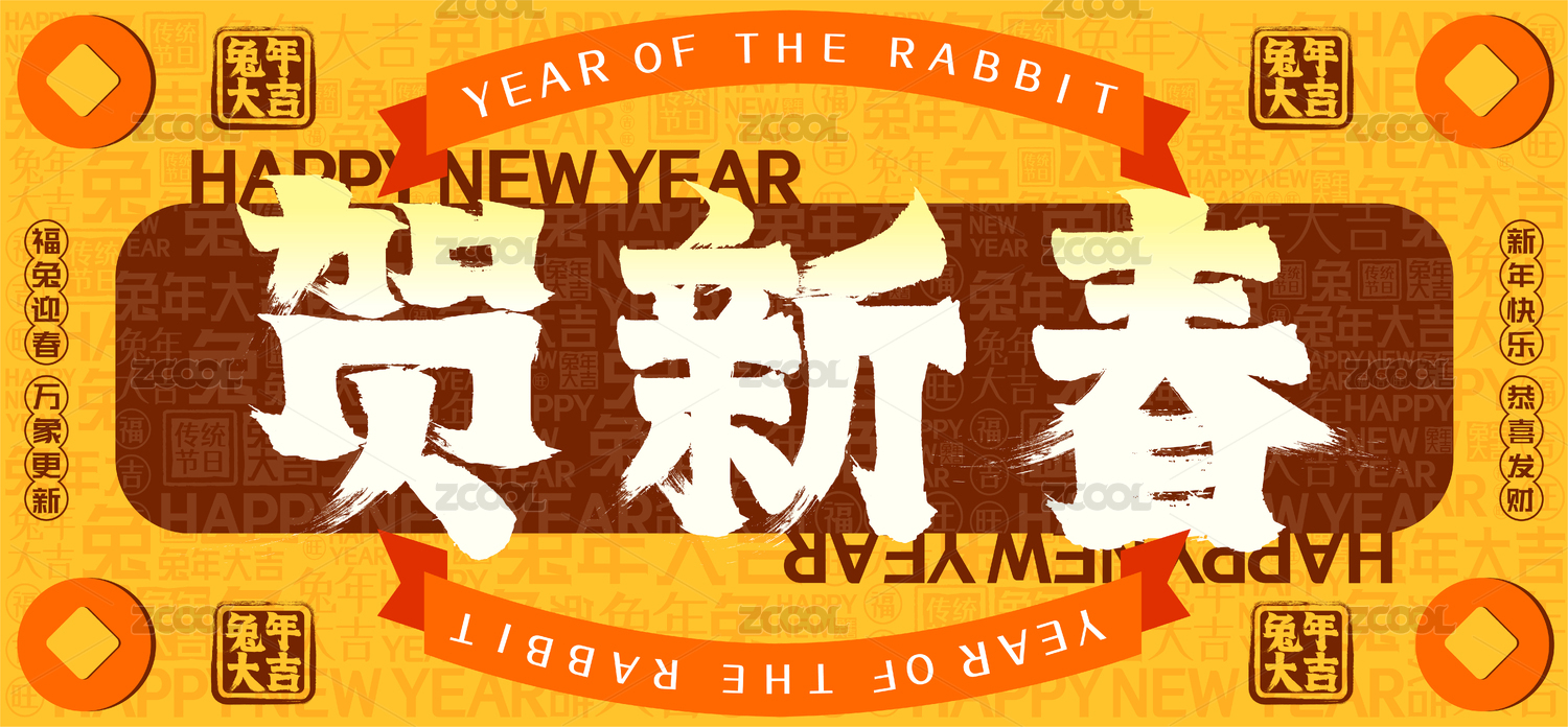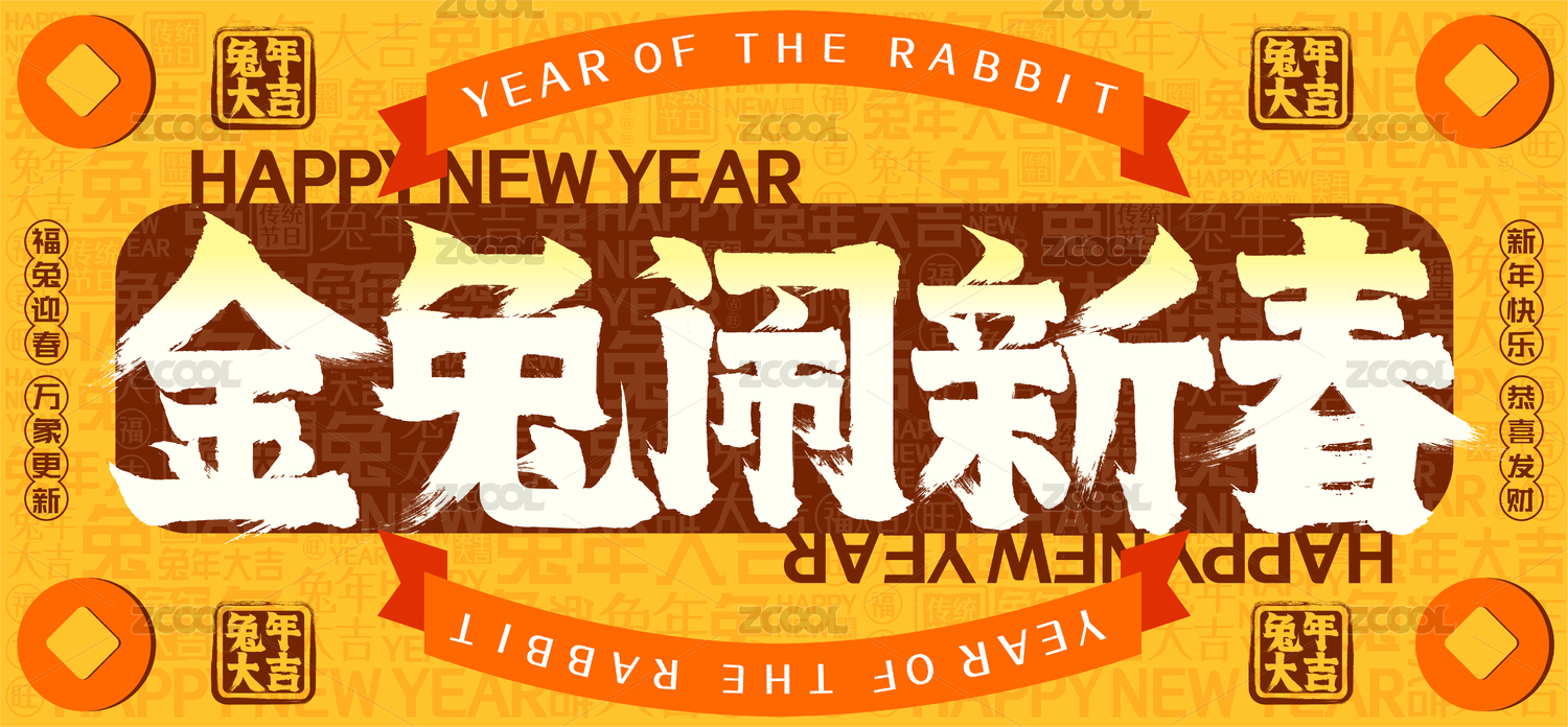金兔贺岁国潮铜钱文字装饰春节新年书法字