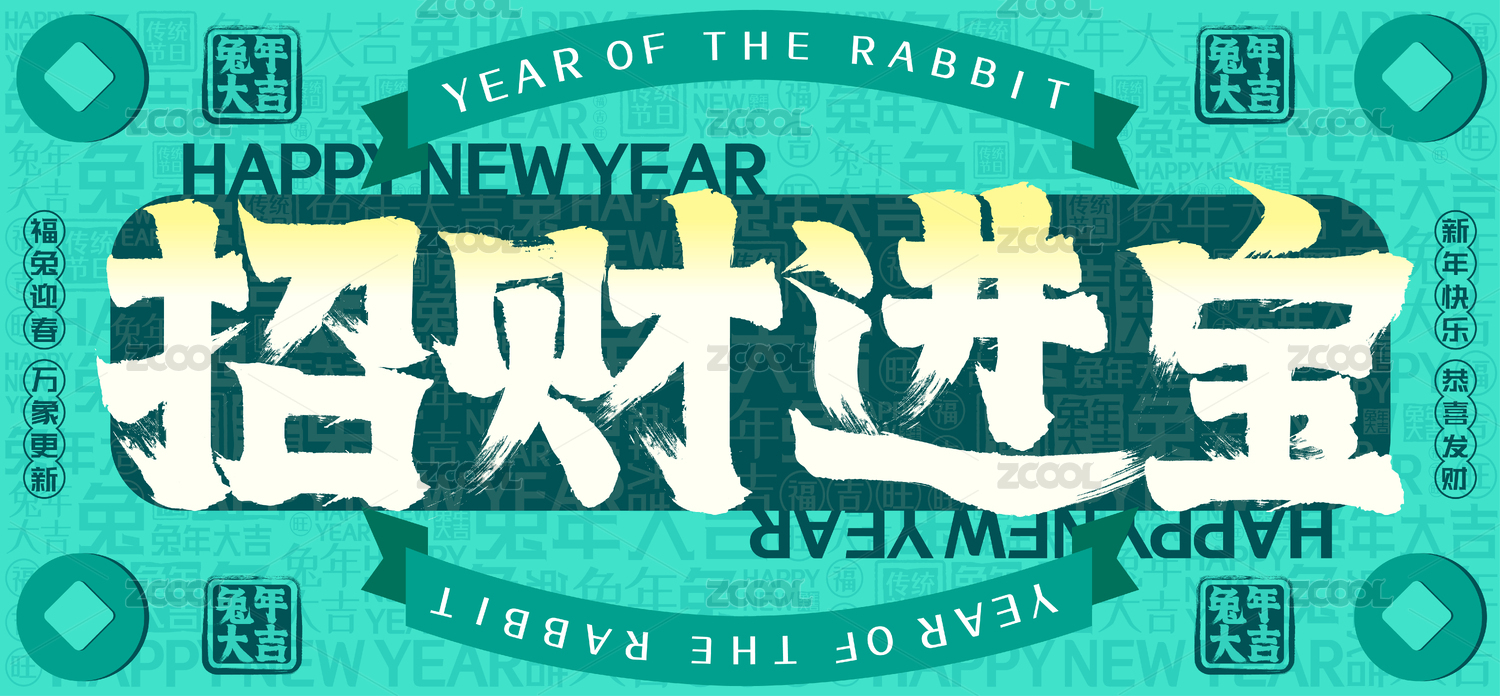 金兔聚财国潮铜钱文字装饰春节新年书法字