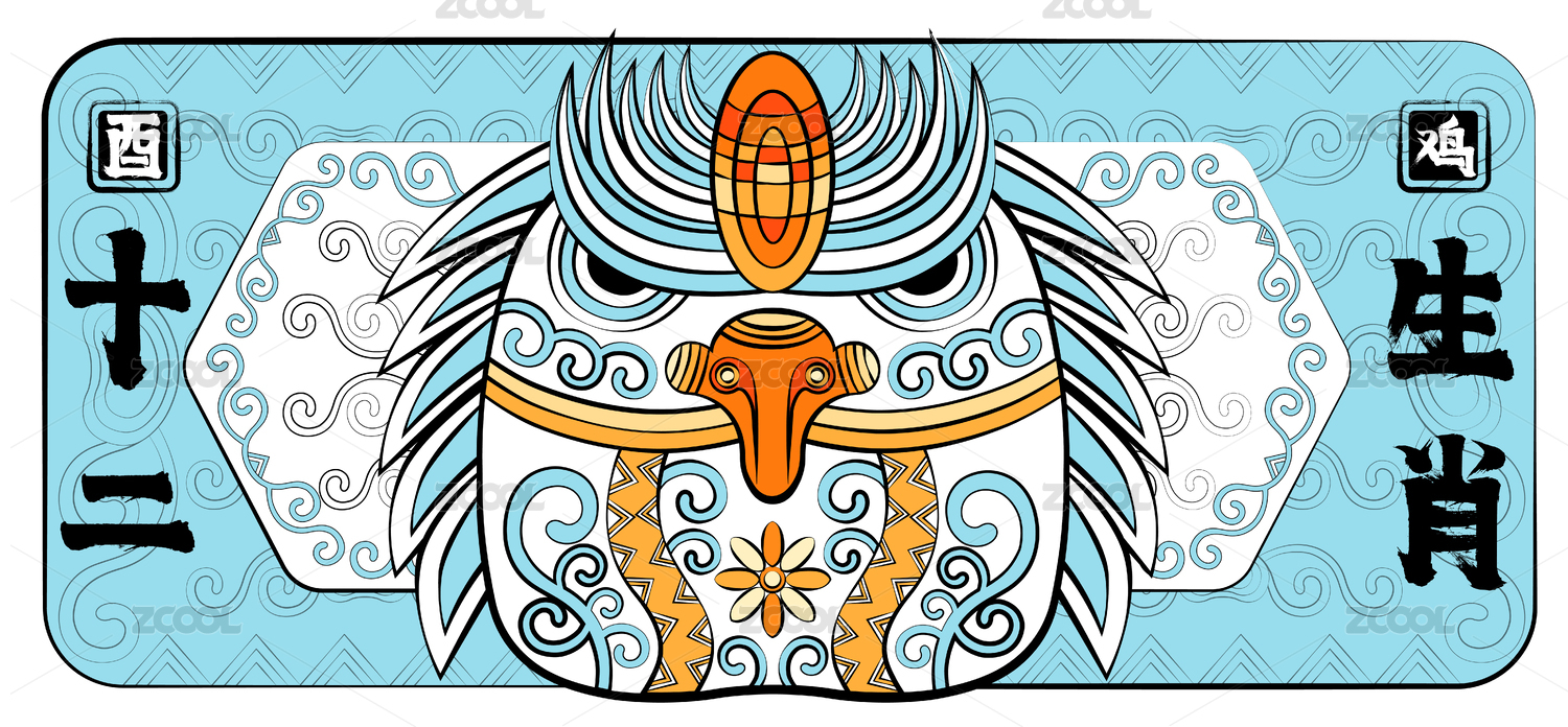 酉鸡国潮十二生肖时尚潮流印花纹样矢量插画