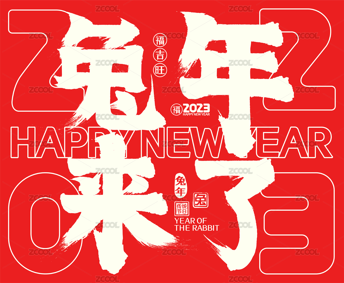 2023兔年吉祥喜庆中国红春节新年毛笔字