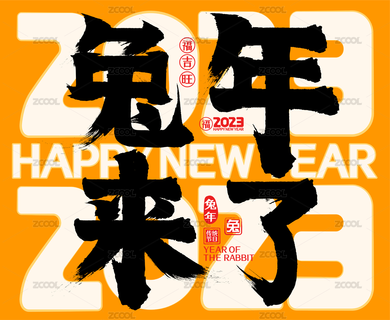 2023兔年快乐喜庆中国红春节新年毛笔字