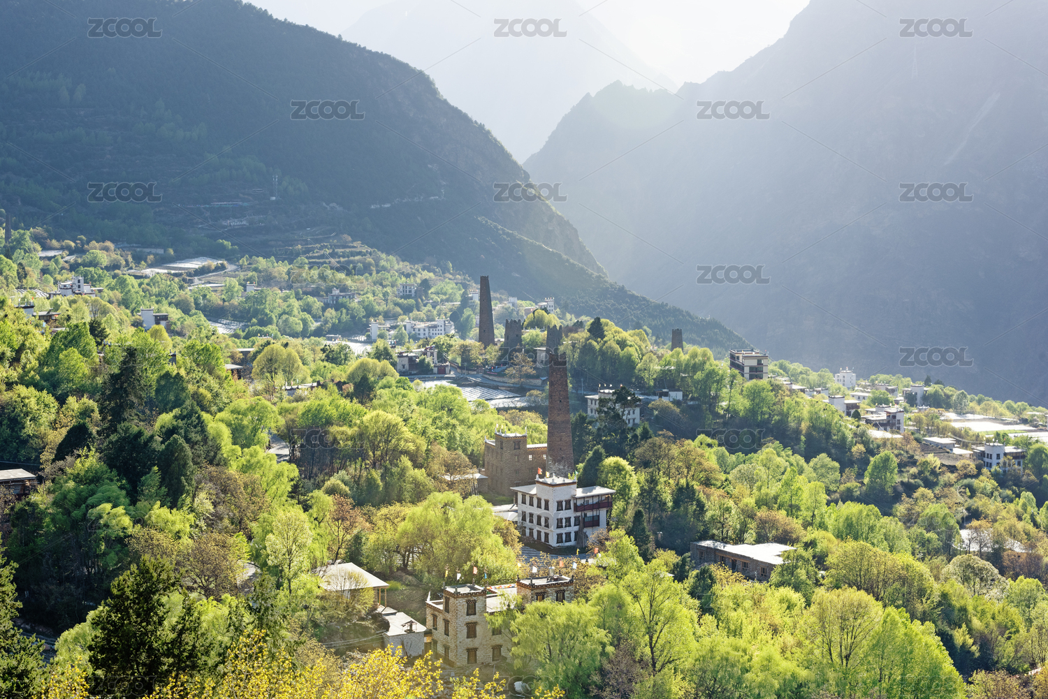 阳光下的四川甘孜丹巴的中里和甲居藏寨