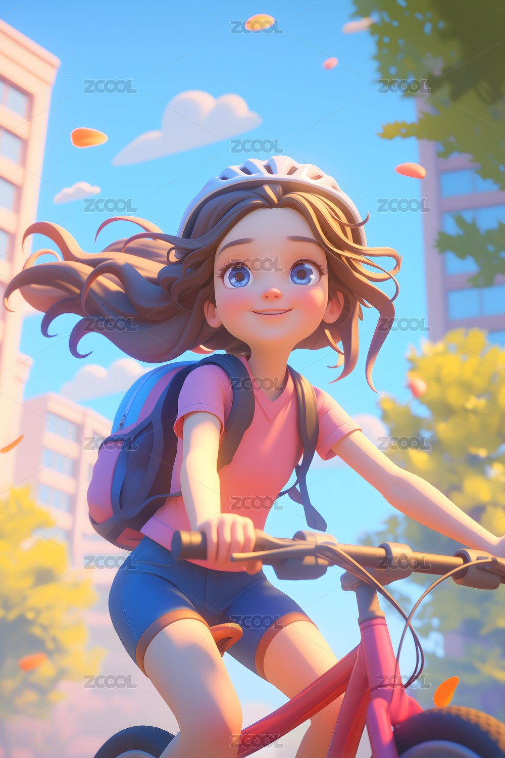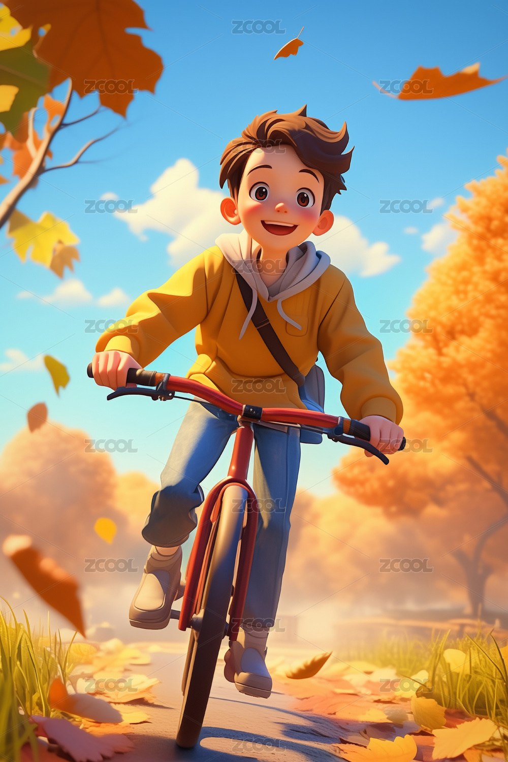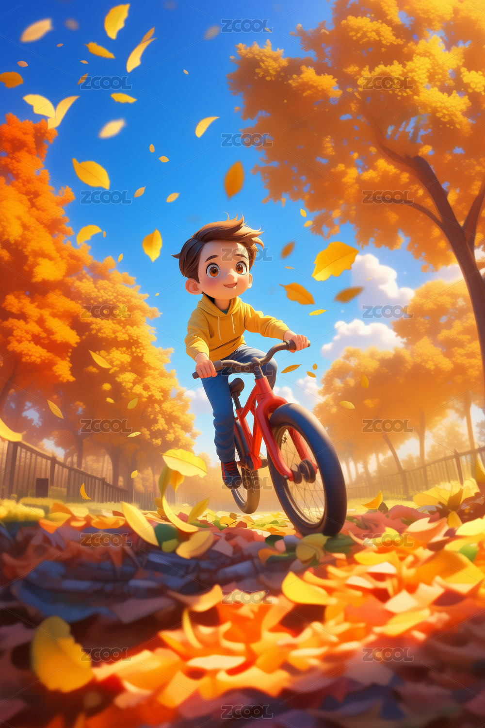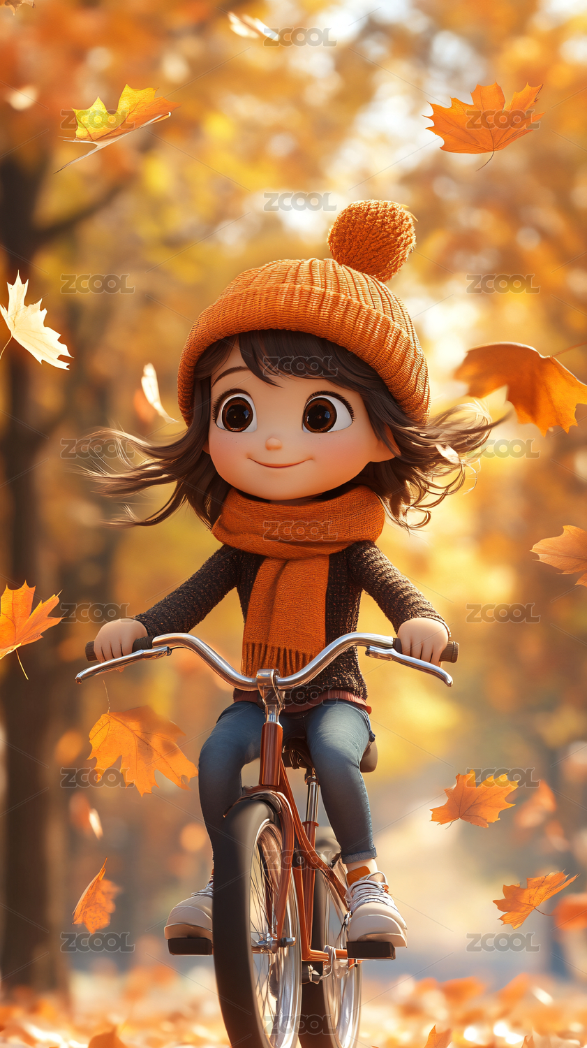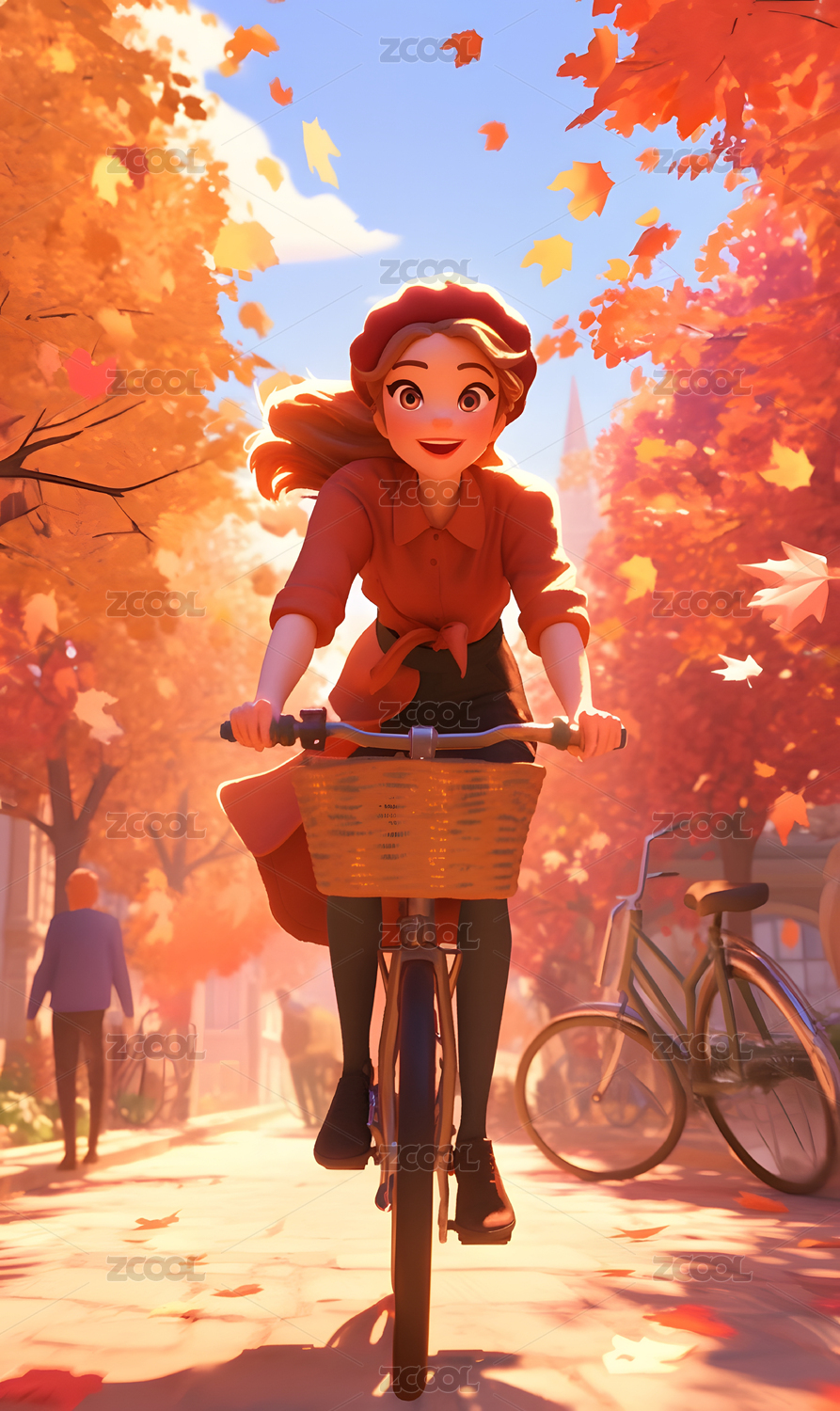 户外,骑车,夏天,秋天,立秋,骑行,落叶,女孩,自行车,枫叶