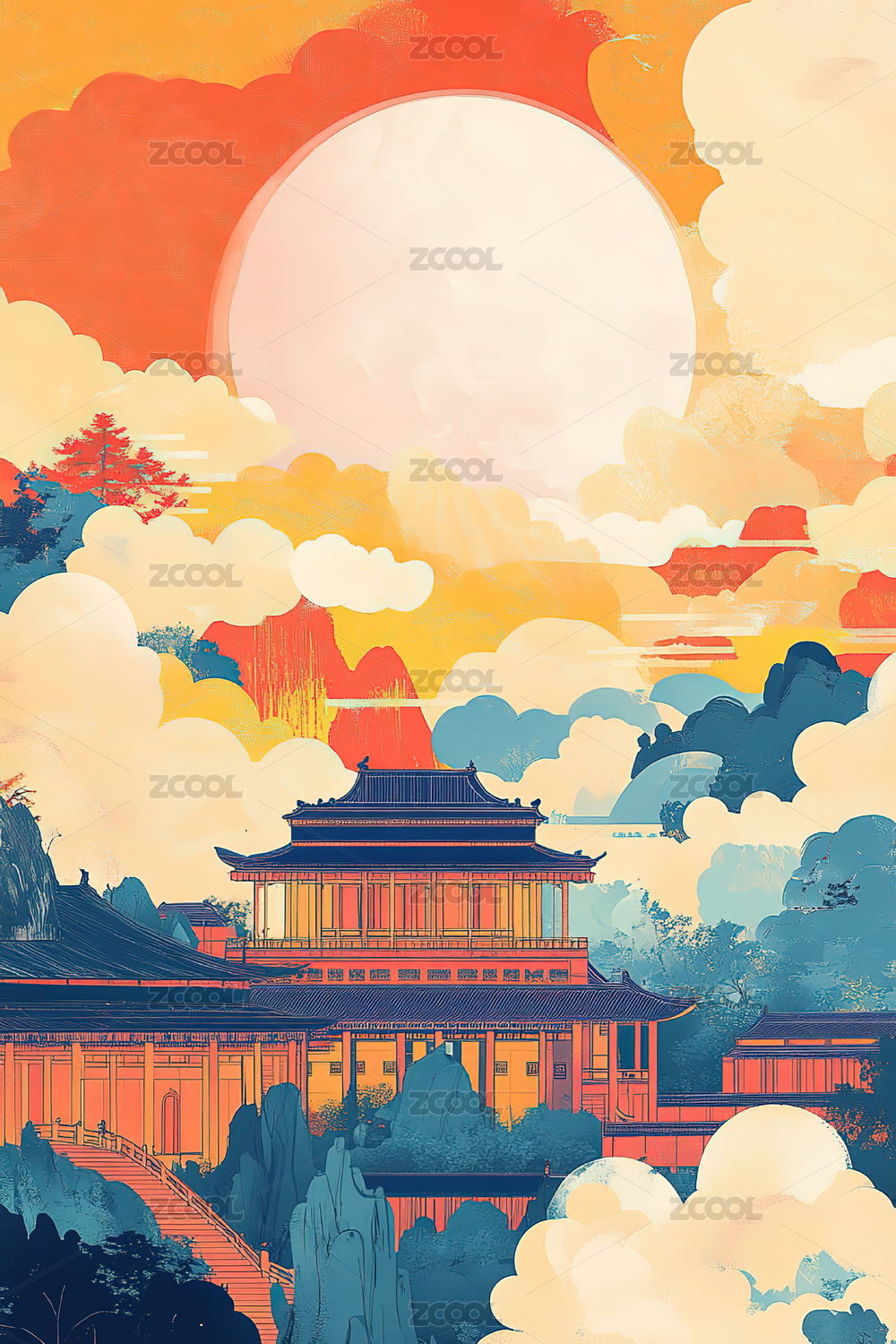 插画,国风,古建筑,故宫,紫禁城,北京,保和殿