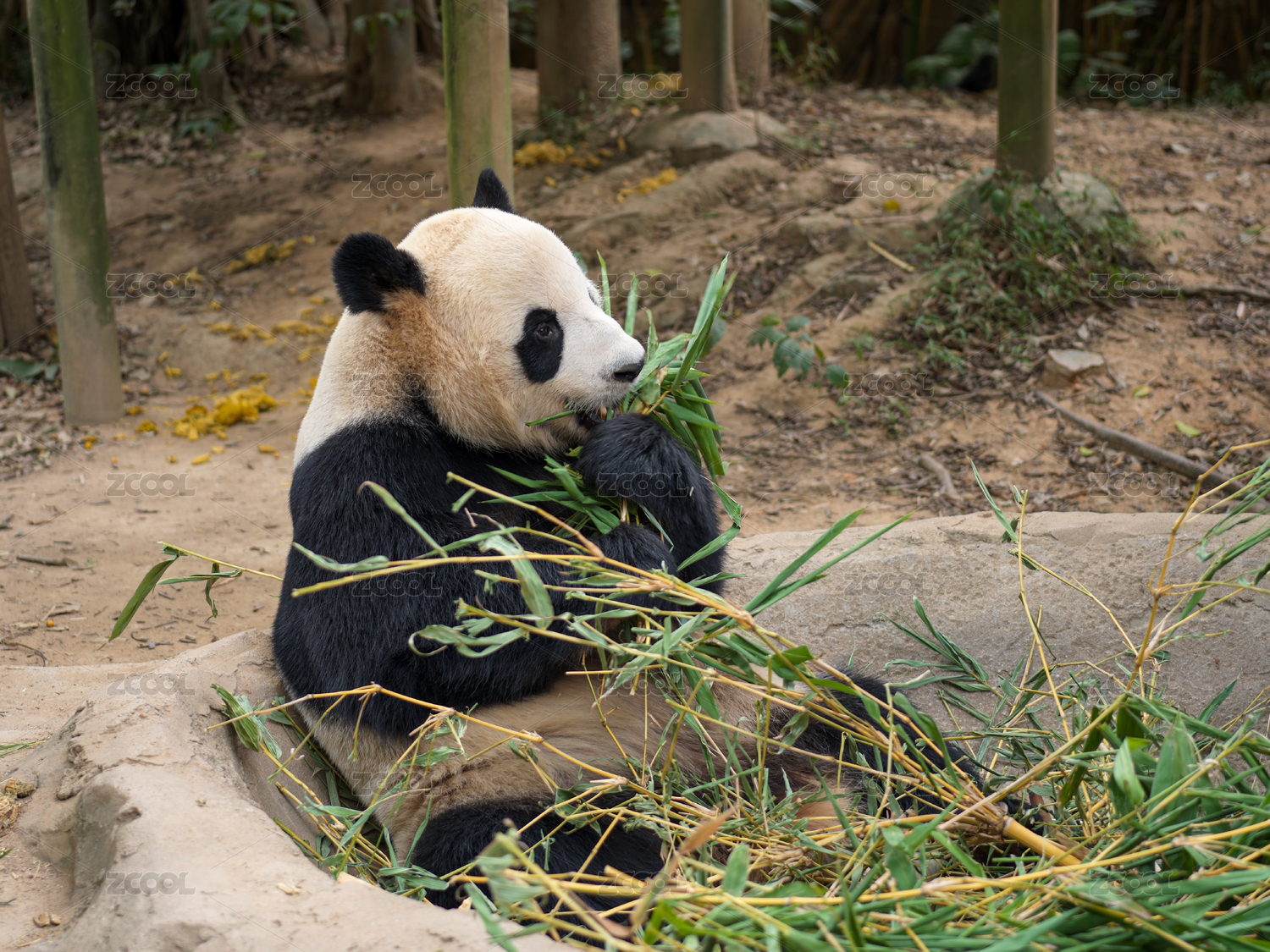 大熊猫进食竹子