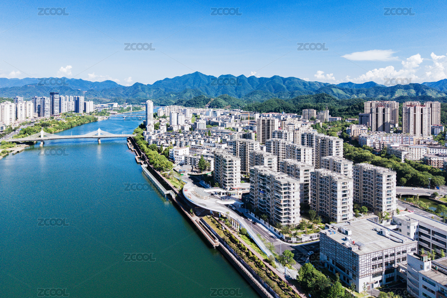 常山县常山港两岸城市风光航拍