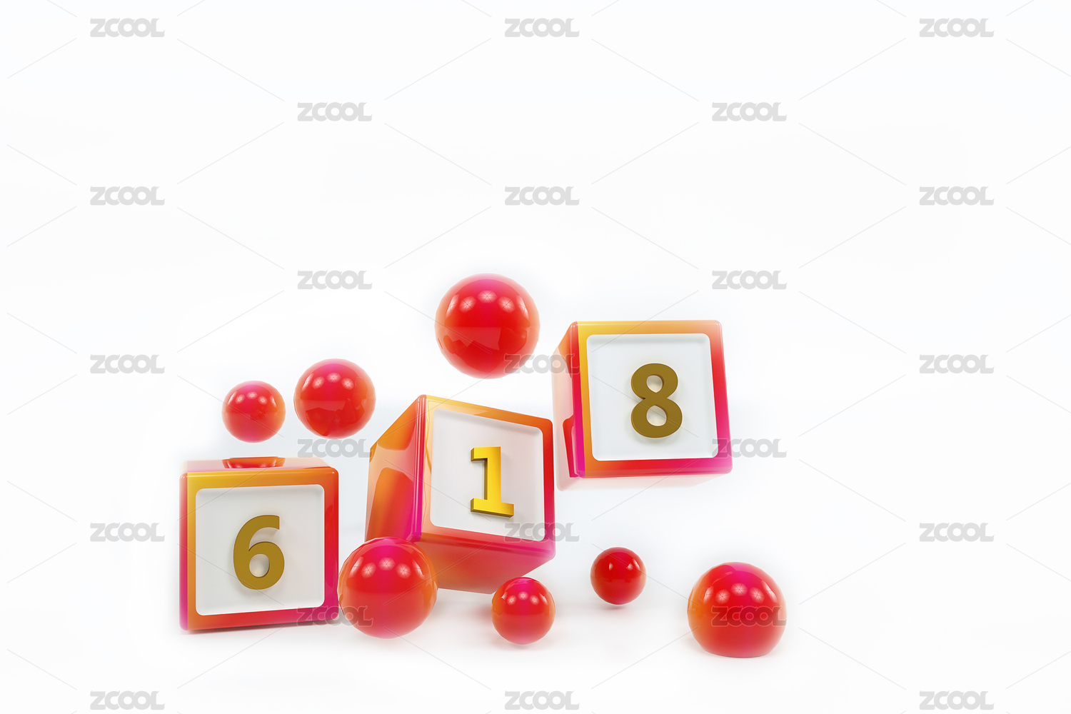 白色背景中印有618字样的彩色方块