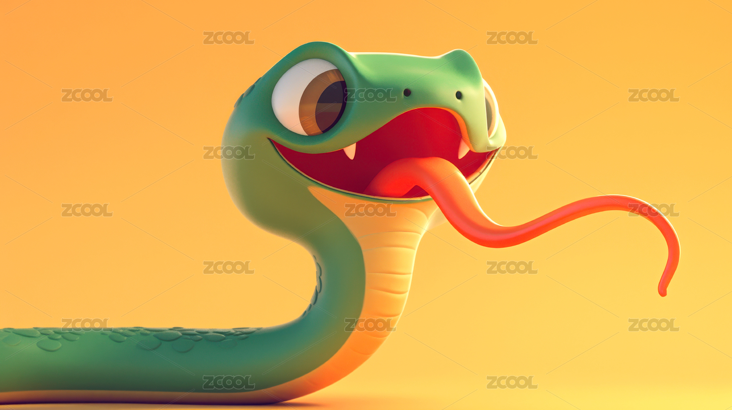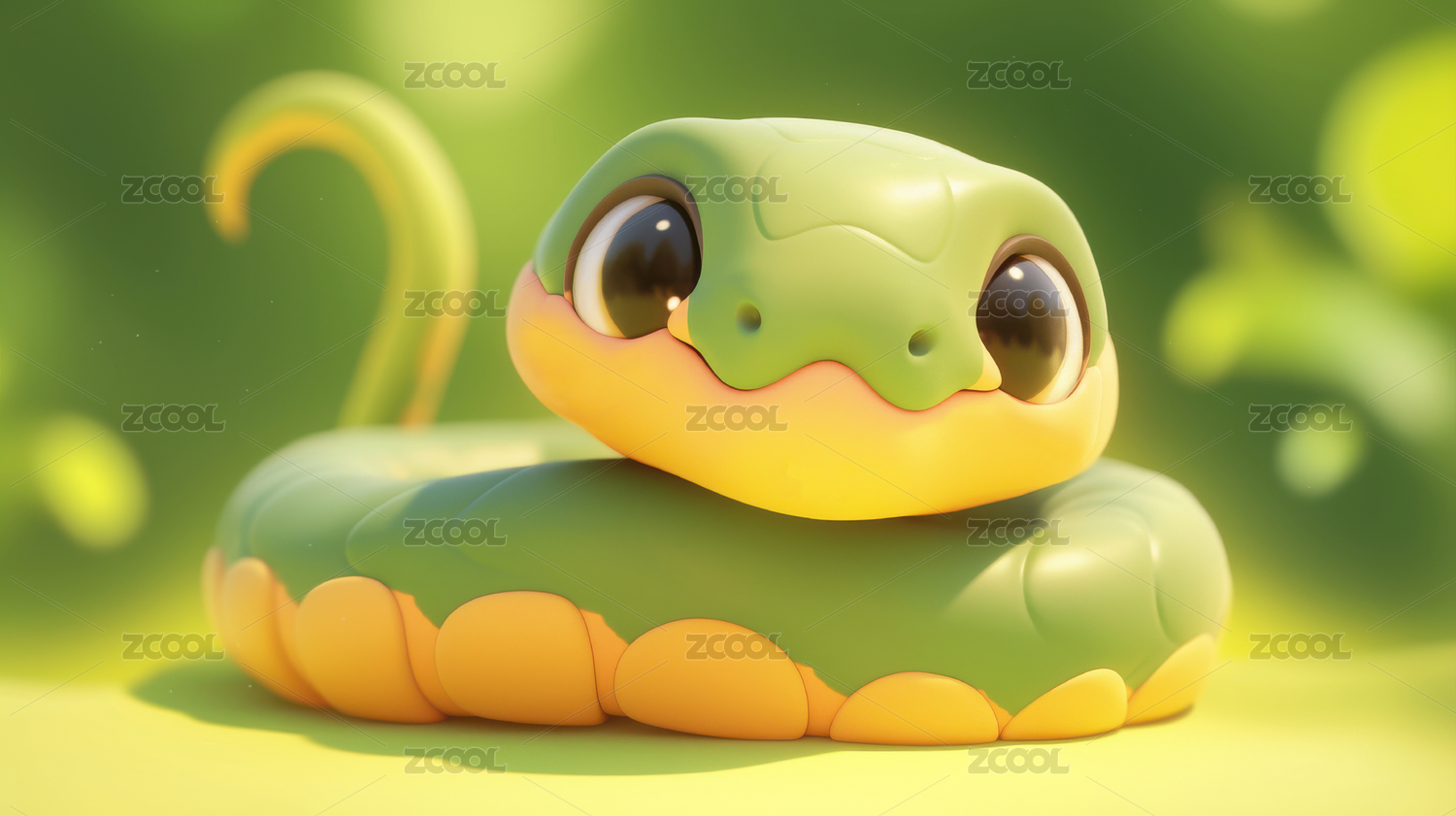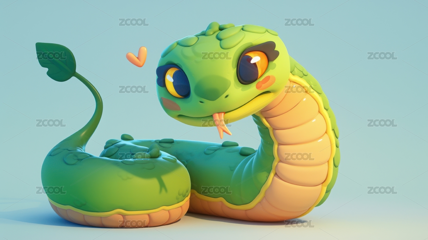 卡通3D可爱萌蛇贺新春蛇年新年插画