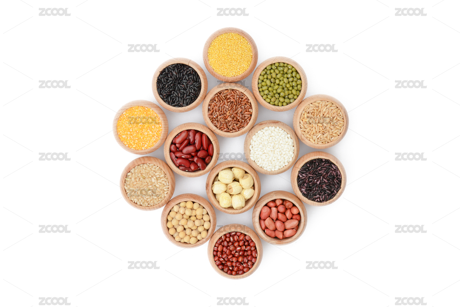 白底上的五谷食材