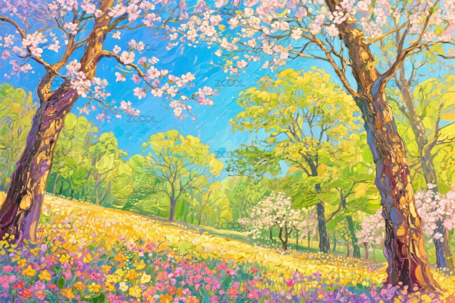 花朵,蓝天,平静,自然,色彩,清丽,诗意,春日,白云,花田