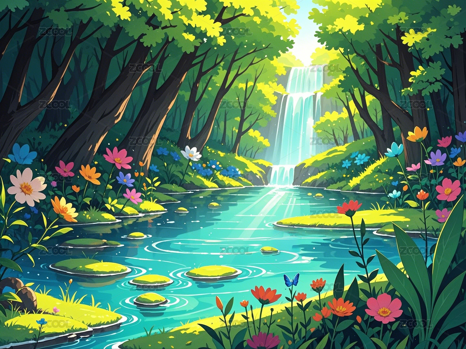 森林,溪流,树木,绿色,自然,阳光,风景,河流,石头,植物