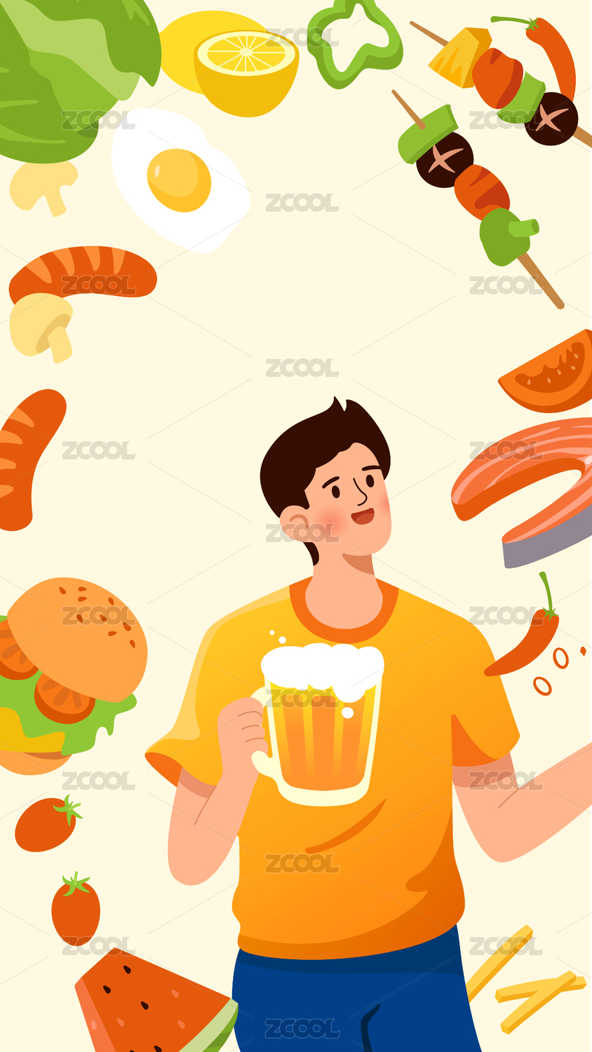 外卖,美食,APP,H5,封面,手绘插画,手绘海报,插画海报,H5插画,宣传海报