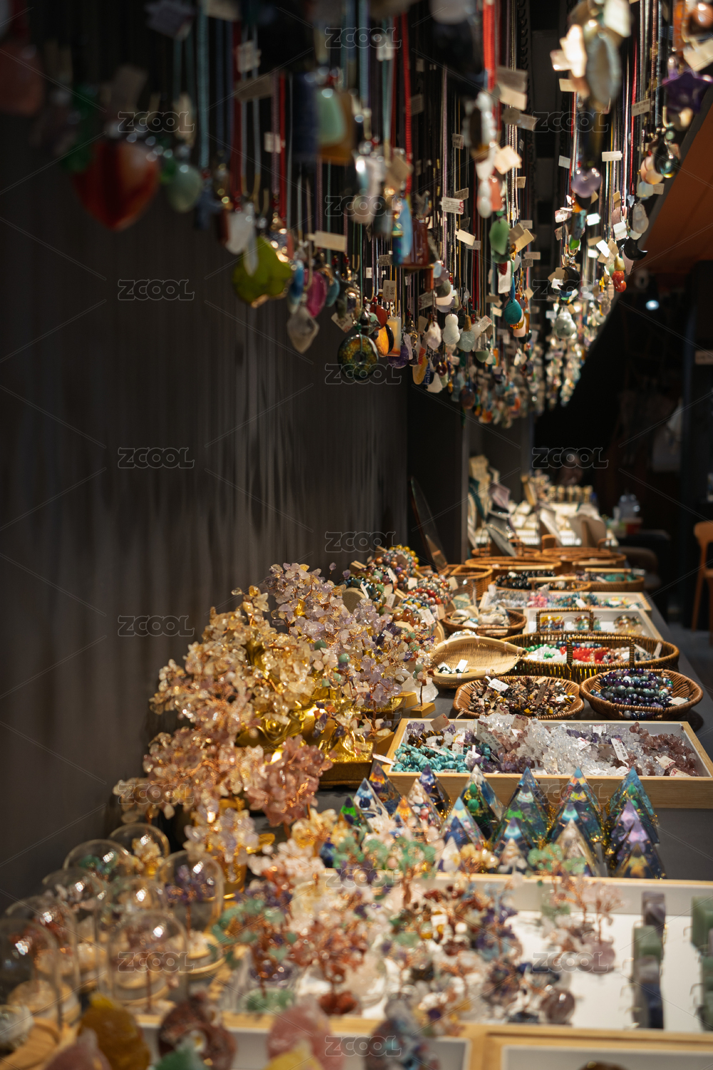 琳琅满目的水晶饰品与矿石展示