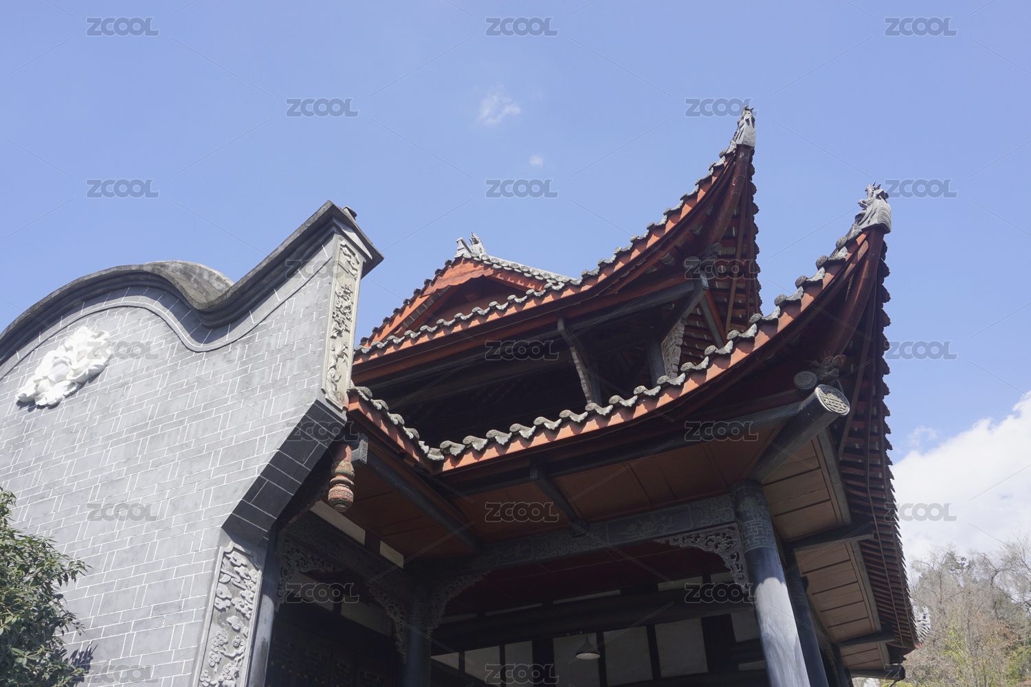 成都洛带古镇川北会馆乐楼单檐歇山式屋顶